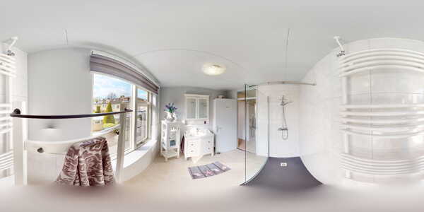 De keurig afgewerkte ruime badkamer is in een voormalige slaapkamer geplaatst, waardoor u hier extra veel ruimte tot uw beschikking heeft. De badkamer is voorzien van lichte betegeling op de wanden en op de vloer een lichte plavuizenvloer. In de badkamer treft u een ruime inloopdouche en een wastafelmeubel aan. Daarnaast is hier een designradiator aanwezig. Het geheel ziet er allemaal zeer verzorgd uit.