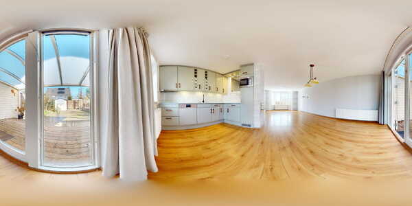 Dit had u niet gedacht! Een ruime woonkamer met een erker aan de voorzijde en openslaande tuindeuren aan de achterzijde. De kamer is fraai afgewerkt in een romantische kleurstelling en een fraaie laminaat vloer. Vanaf uw loungebank heeft u aan de voorzijde heerlijk zicht op openbaar groen en het vaarwater. In de woonkamer is ook een leuke elektrische sfeer haardkachel aanwezig. U zult het met ons eens zijn dat een grote stamtafel in het eetkamergedeelte hier goed tot zijn recht zal komen. Heerlijk de openslaande deuren open zetten en genieten van het zonnetje tijdens een familieontbijt of brunch. De bijzondere eigenschappen van de aanwezige veranda zullen u zeker gaan bevallen! Het vormt een verlengstuk en overgang van de binnenruimte met de diepe tuin. Door de ligging van de woning heeft u ’s morgens het zonnetje aan de achterzijde in huis vallen en ’s middags heerlijk aan de voorzijde.