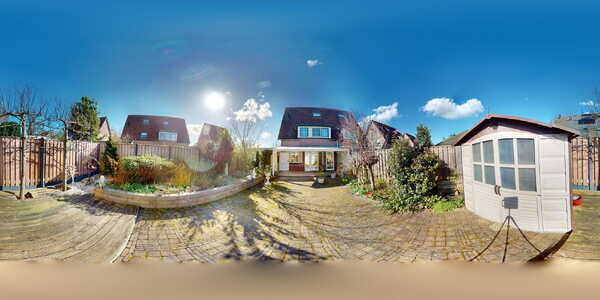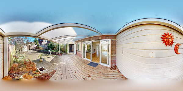 Tuin: de diepe tuin heeft een oostenligging maar op verrassende wijze heeft u in de zomer zelfs de ondergaande zon uit het westen in de tuin staan! Dit betekent dus de gehele dag genieten van de warmte! En genieten zult u in deze fraai aangelegde tuin met sierbestrating en diverse vaste beplantingen. Is de temperatuur lekker, maar een zomerse bui bederft de geplande barbecue? De veranda van ca. 6 meter breed en ca. 2,50 meter diep zal u uitkomst bieden! Bovendien kunt u vanuit huis via de veranda “droog” de garage bereiken.