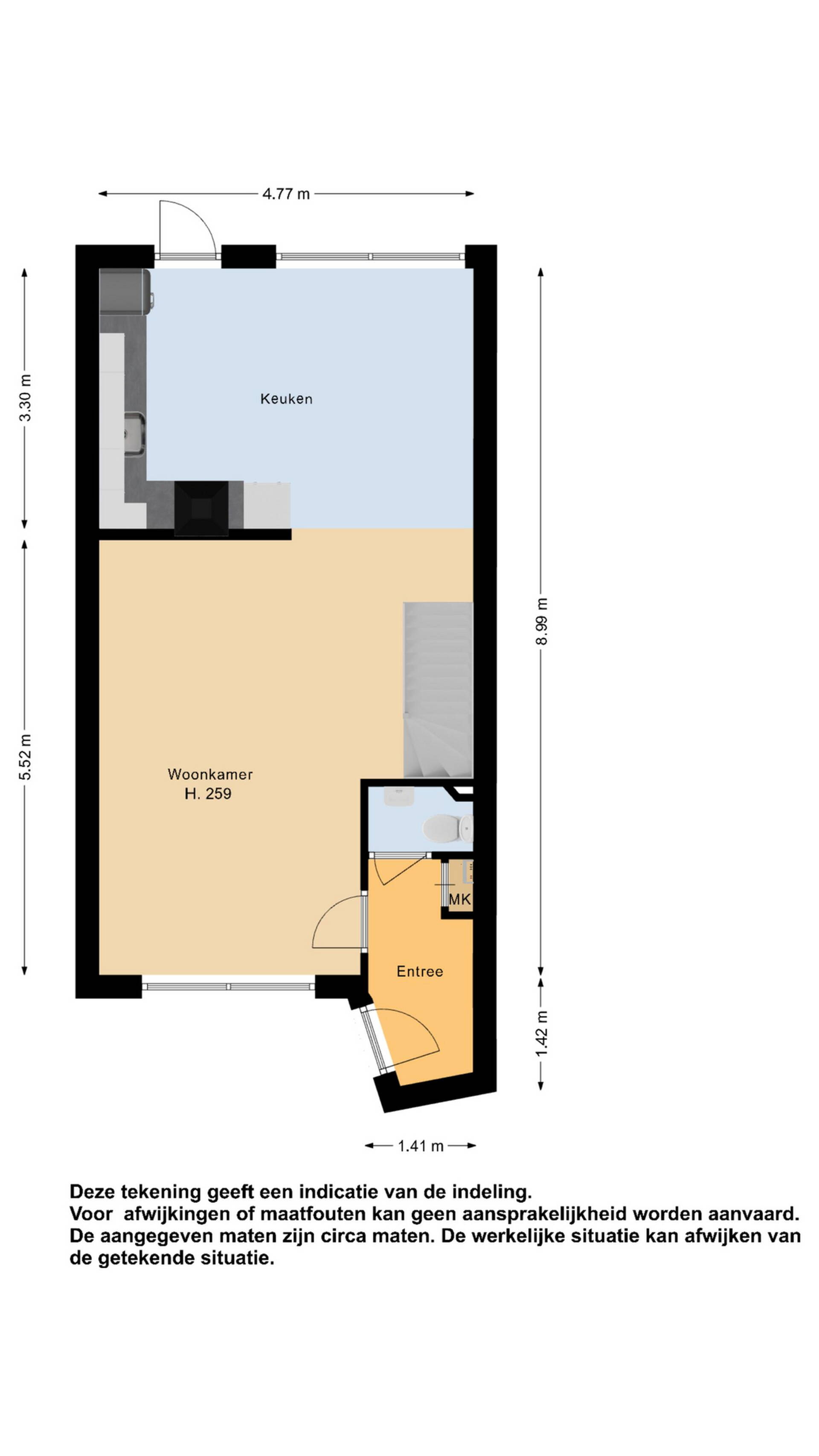 Begane grond: via de entree aan de voorzijde van de woning komt u in de hal met garderoberuimte, meterkast en toilet met fonteintje.