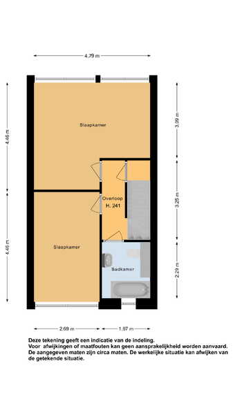 1e verdieping: op de 1e verdieping zijn naast de overloop en badkamer, een 2-tal ruime slaapkamers van verschillende afmetingen gesitueerd. In beide slaapkamers kunt u met gemak een 2-persoonsbed plaatsen. Door de vormgeving van de woning heeft u de beschikking over recht opgetrokken wanden en hierdoor is er ook op deze verdieping veel ruimte aanwezig. De slaapkamers zijn voorzien van een laminaatvloer. De slaapkamer aan de achterzijde is vergroot. Uiteraard heeft u de mogelijkheid om deze slaapkamer weer op te splitsen naar 2 slaapkamers waardoor het aantal slaapkamers op deze verdieping weer op 3 kan komen.