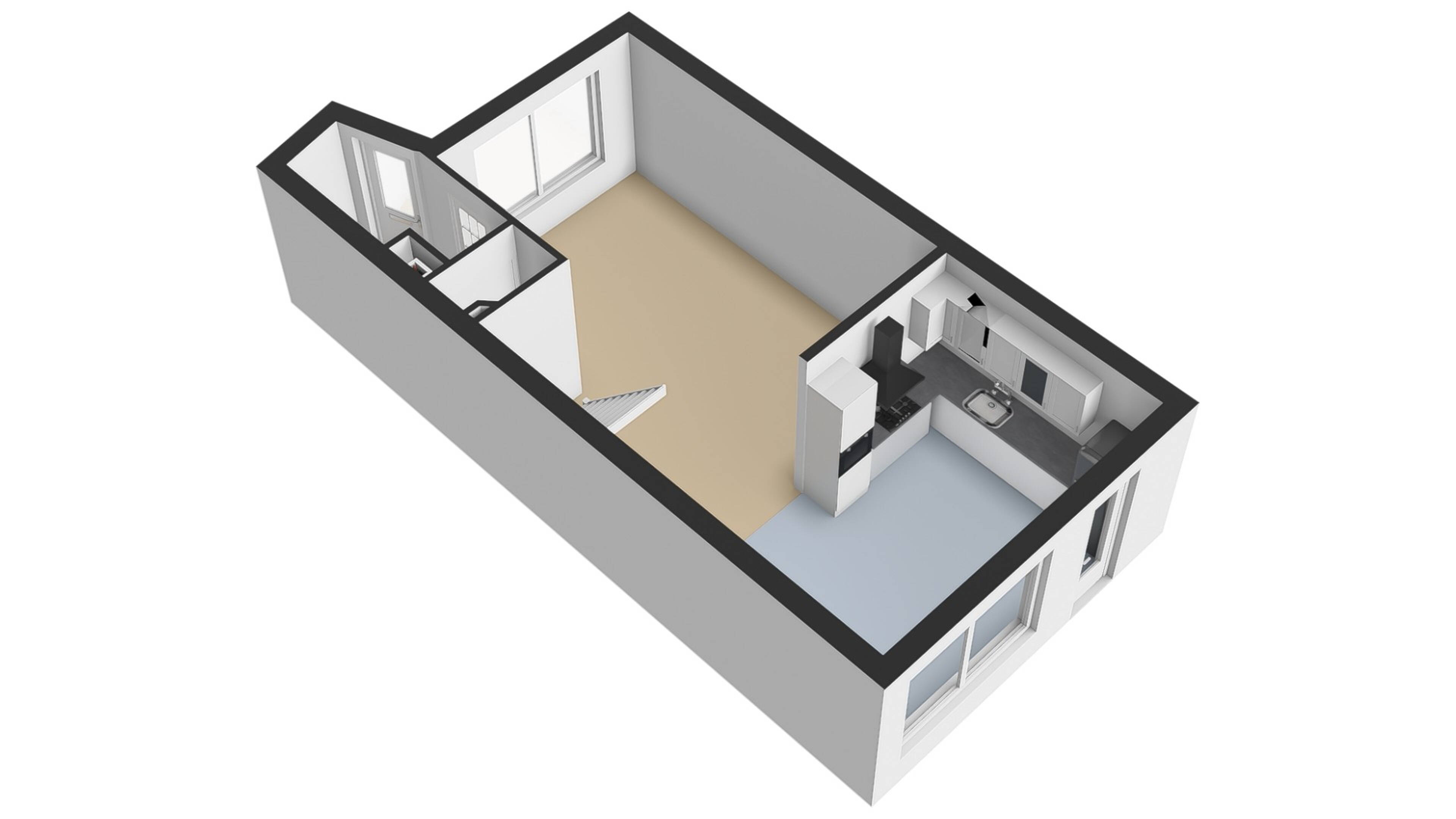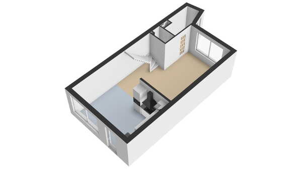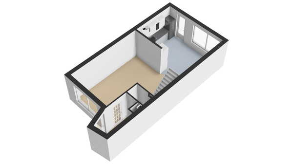 De keuken in L- opstelling is in een grijze kleurstelling uitgevoerd gecombineerd met zwarte accenten. De keuken is voorzien van een afzuigkap, 4 pits gaskookplaat, koel/vriescombinatie, combimagnetron en vaatwasser. U heeft veel werkruimte tot uw beschikking, maar ook genoeg opbergruimte! Door de indeling van de woonruimte is een soort van woon/leefkeuken effect ontstaan. Vanuit de keuken heeft u fijn toegang naar de achtergelegen tuin.