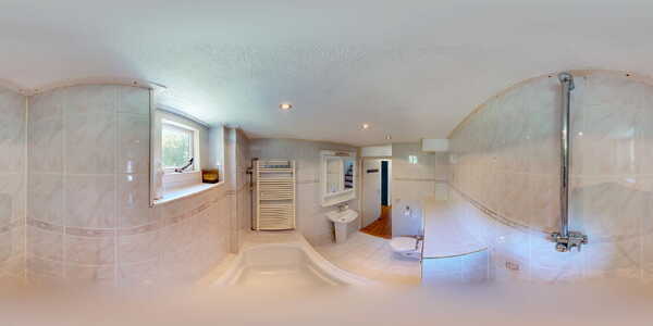 De functionele badkamer is volledig betegeld in een lichte kleurstelling. De badkamer is voorzien van een kunststof ligbad met douchegelegenheid, hangcloset en wastafel met zuil. De designradiator maakt het geheel helemaal af.