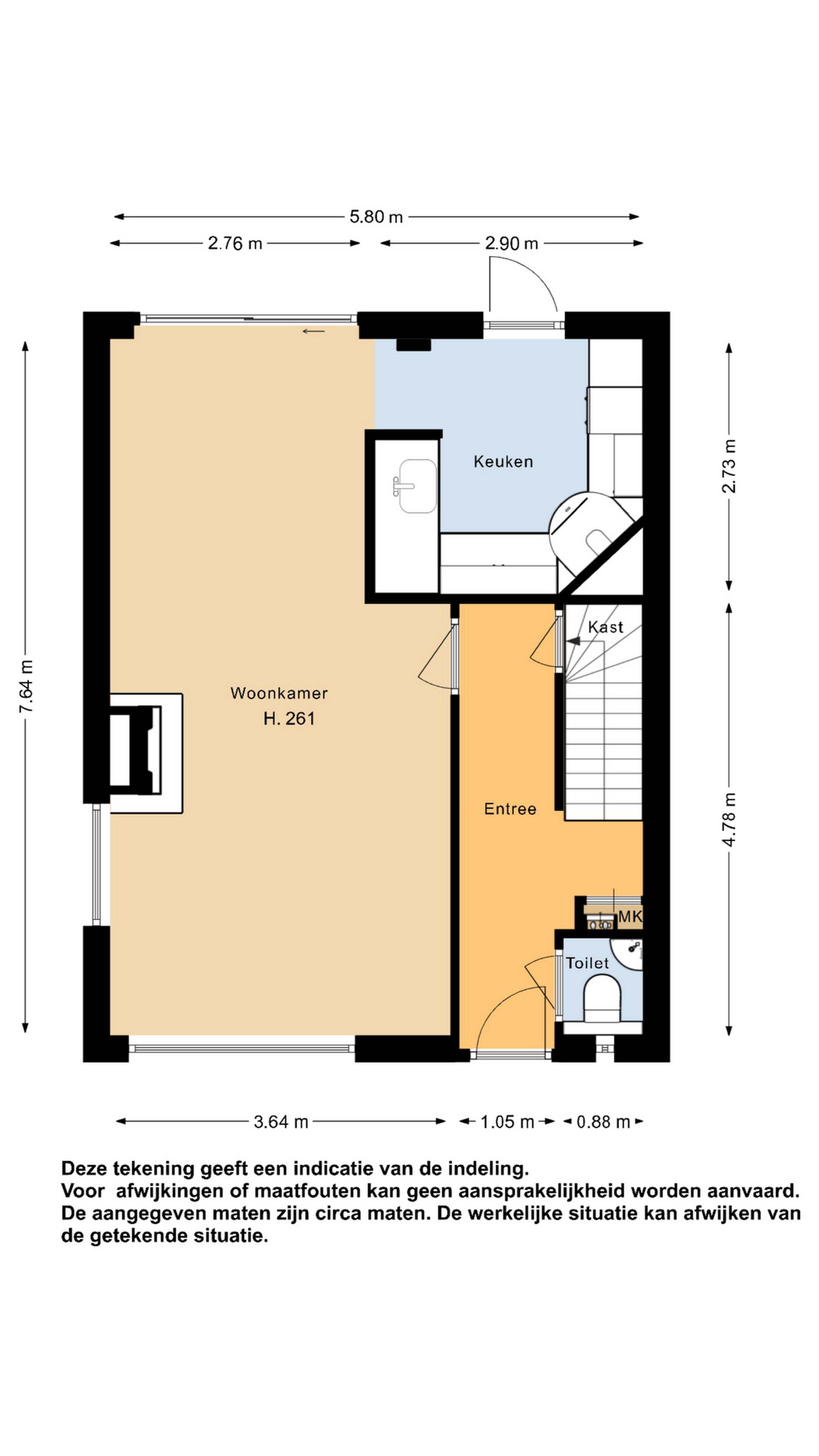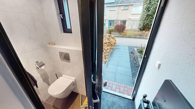 Begane grond: via de entree aan de voorzijde van de woning komt u in de ruime hal met garderoberuimte, meterkast en moderne toiletruimte met hangcloset en fonteintje. Tevens treft u hier de trapopgang naar de 1e verdieping. Onder de trap heeft u fijn een diepe trapkast tot uw beschikking.