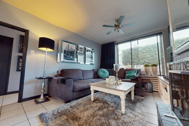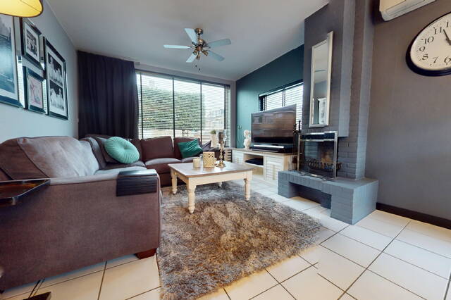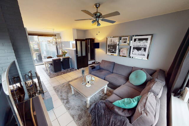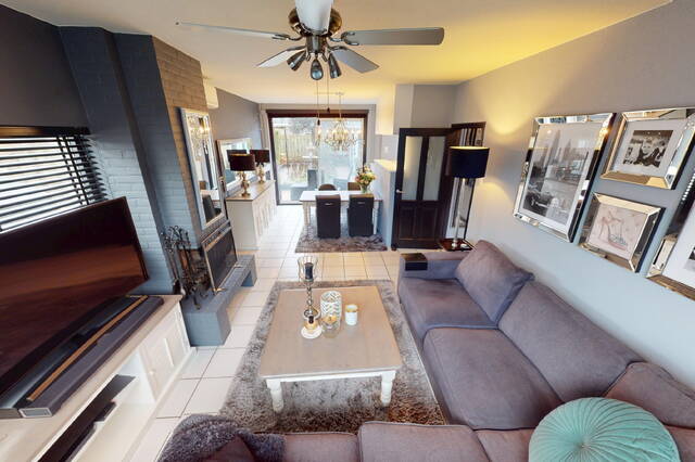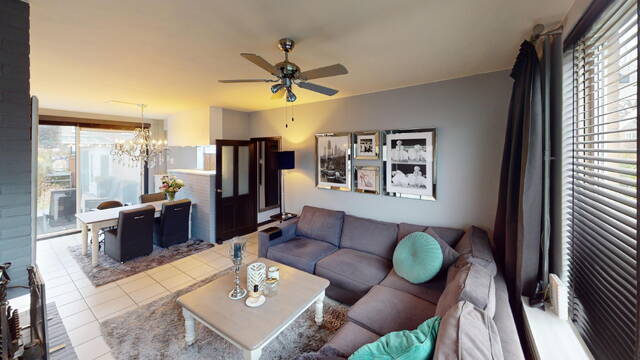 De woonkamer wordt gekenmerkt door de grote raampartij aan de voorzijde en een fijne schuifpui aan de achterzijde. Zeer plezierig bij deze hoekligging van de woning is het extra raam dat u aan de zijkant van de woonkamer heeft. Het bezorgt u extra lichtinval! Aan de voorzijde is de living gesitueerd en aan de achterzijde het eetgedeelte met fraai zicht op de tuin. Op de vloer treft u een witte tegelvoer aan en het plafond is voorzien van strak stucwerk. Door de praktische vormgeving van de woonkamer kunt u op diverse wijzen uw interieur inrichten. De aanwezige airconditioning is natuurlijk tijdens warme dagen erg comfortabel!