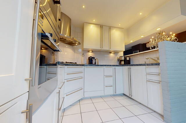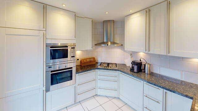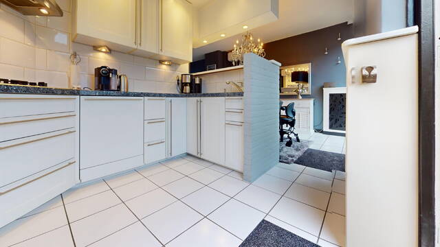 De halfopen keuken in U-vorm is aan de achterzijde van de woning geplaatst. Door de vorm heeft u veel werkruimte tot uw beschikking heeft, maar ook veel kastruimte. De keurige keuken is voorzien van een afzuigkap, 4 pits gaskookplaat, combimagnetron, hete lucht oven, vaatwasser en koel/vriescombinatie. Via de tuindeur kunt u ook de achtergelegen tuin bereiken.