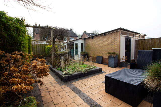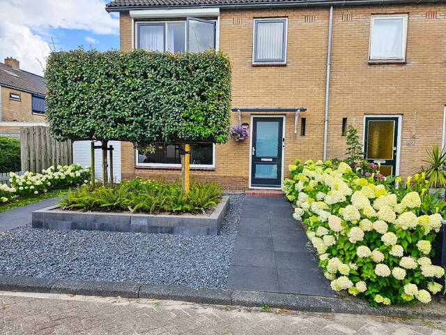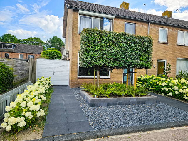 Tuin: de tuin heeft een heerlijke ligging doordat deze gelegen is op het zuiden. U heeft nagenoeg de gehele dag de zon in de tuin staan. Voor de warme dagen kunt u voor de nodige schaduw gebruik maken van het zonnescherm. De tuin is voorzien van sierbestrating en diverse borders met vaste beplantingen! Via een poort aan de voorzijde van de woning kunt u eveneens de tuin bereiken. Mocht u in het bezit zijn van een motorfiets, dan kunt u deze prima zonder veel draaiwerk achter het huis stallen!