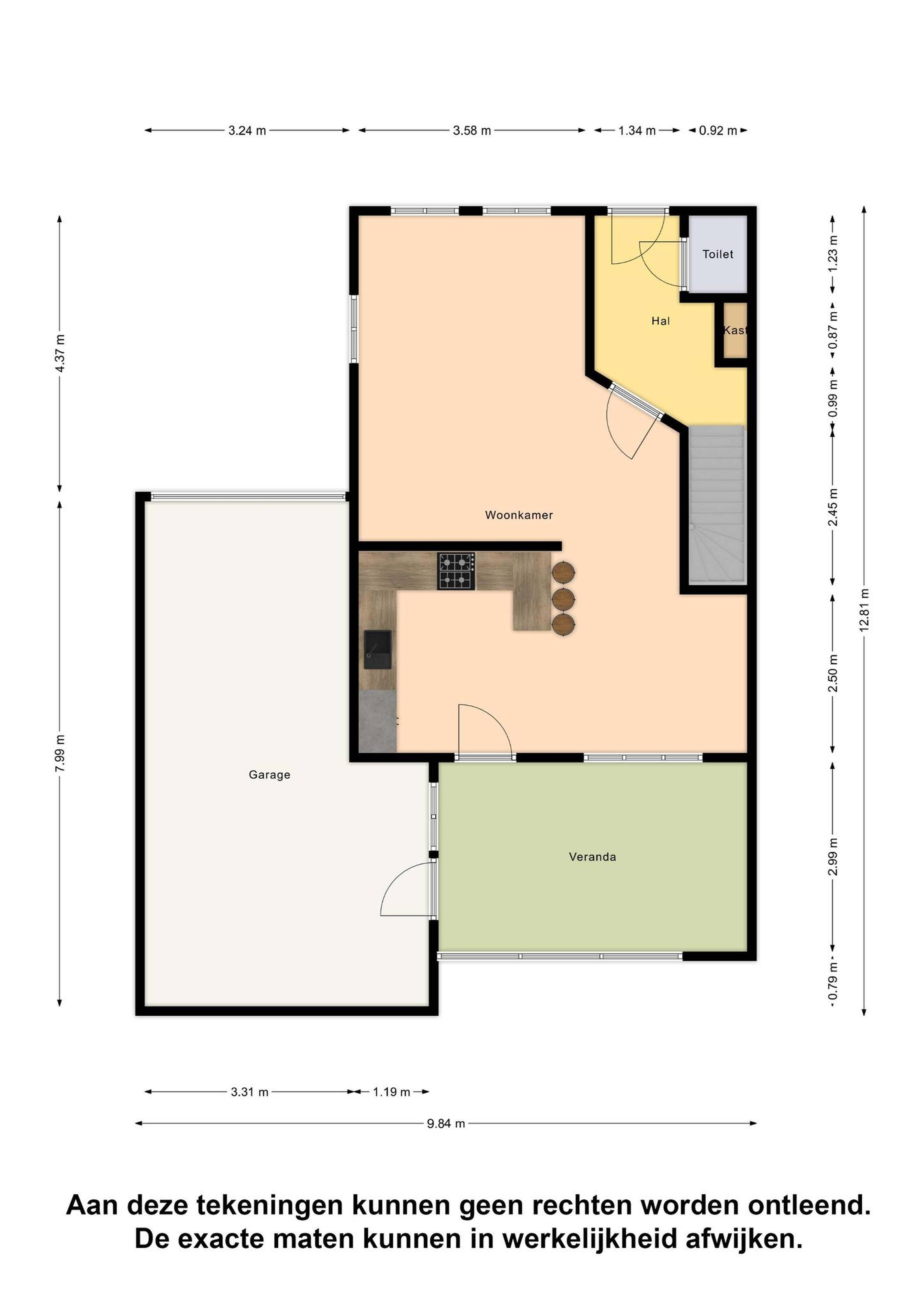 Begane grond via de entree komt u in de hal met daarin een meterkast, trapopgang naar de 1e verdieping en een toiletruimte.