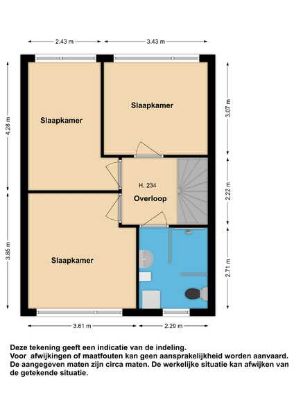 1e verdieping: op de 1e verdieping zijn 3 ruime slaapkamers aanwezig. Deze slaapkamers bereikt u via de ruime overloop. Typerend voor woningen in deze bouwstijl zijn de recht opgetrokken wanden, zodat u veel praktische ruimte in de slaapkamers tot uw beschikking heeft. Door de speelse indeling van de slaapkamers kunt u in alle kamers een 2-persoonsbed plaatsen. Bovendien zijn de kamers keurig afgewerkt met overal laminaatvloeren.