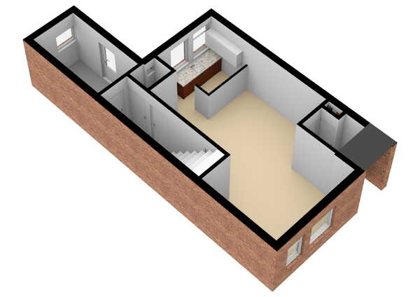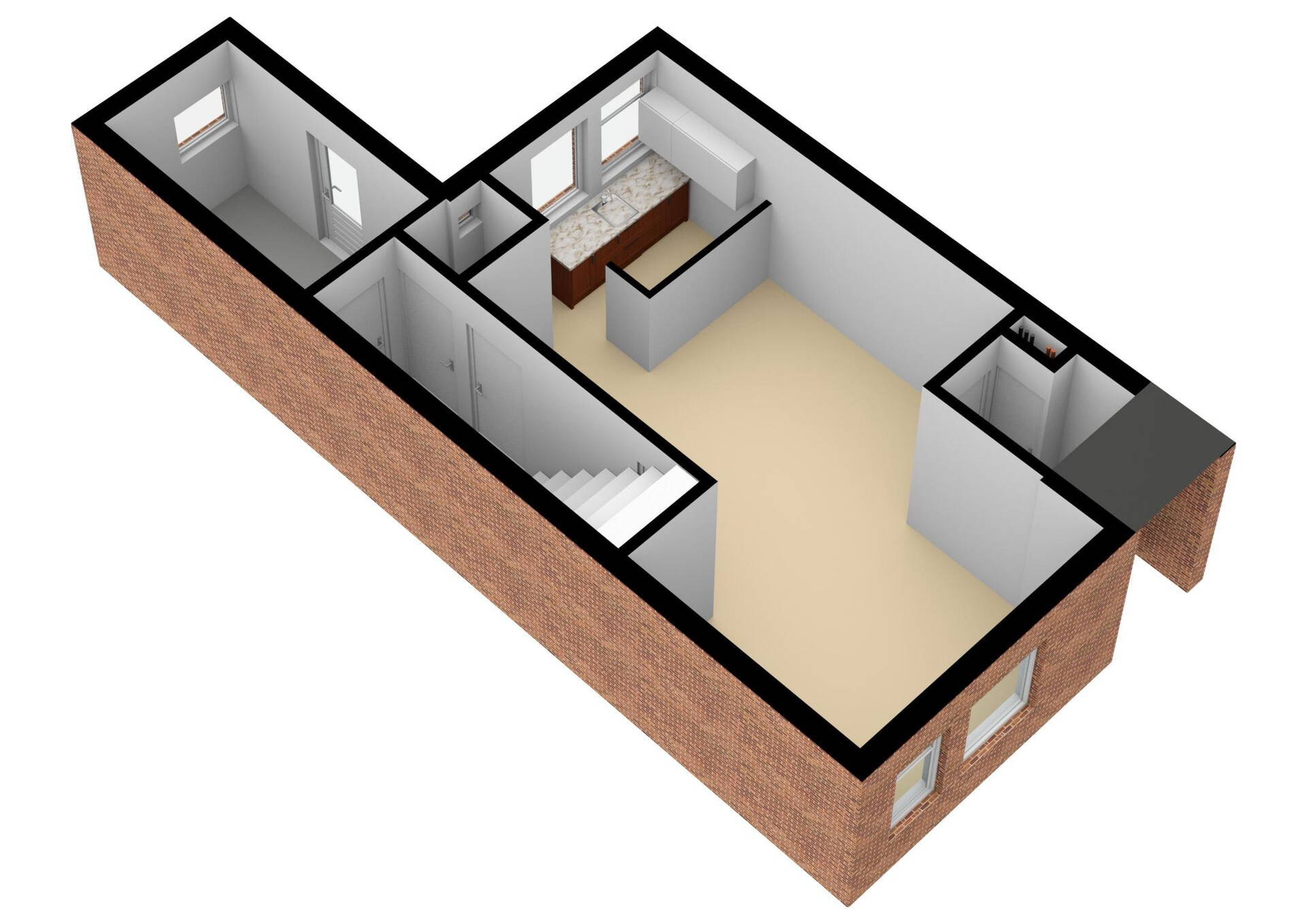 Aan de achterzijde van de woning is de functionele keuken geplaatst. De open keuken zorgt ervoor dat u tijdens het kokkerellen altijd in contact met de living staat.