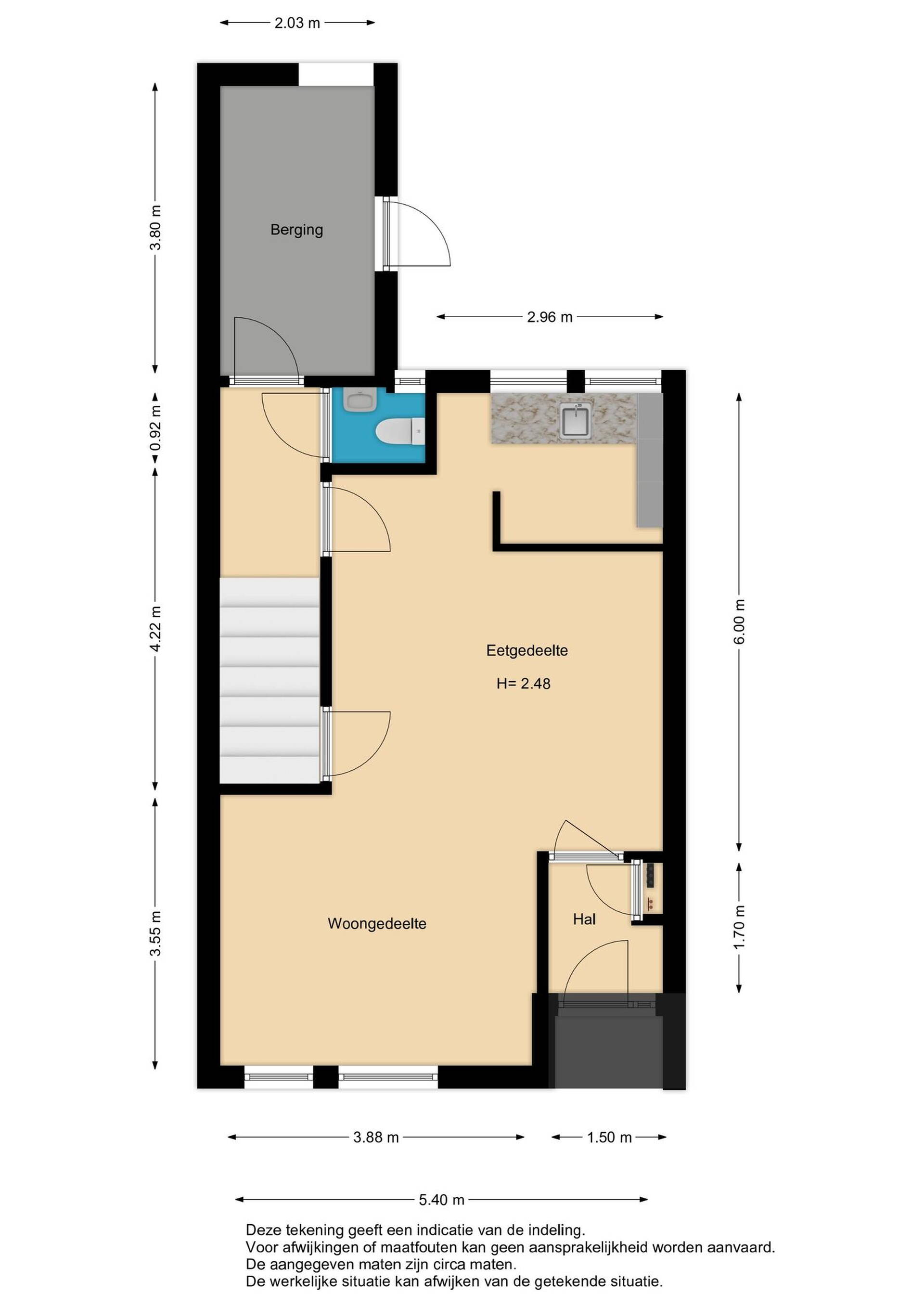 U heeft hier eveneens toegang naar de inpandig bereikbare berging.
