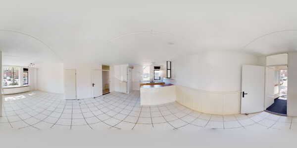 De woonkamer wordt gekenmerkt door de zeer plezierige lichtinval. De speelse indeling zorg voor een bijzonder effect. De wanden zijn deels voorzien van houten lambrisering en op de vloer ligt een praktische witte plavuizenvloer. In de woonkamer heeft u een trapkast, waar u overtollige spulletjes een plaatsje kunt geven.