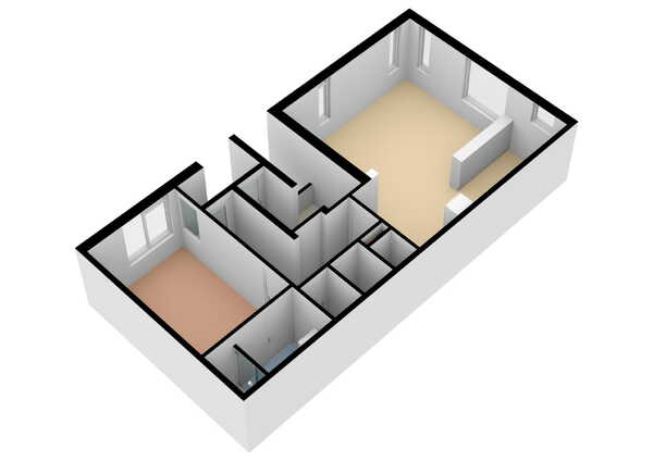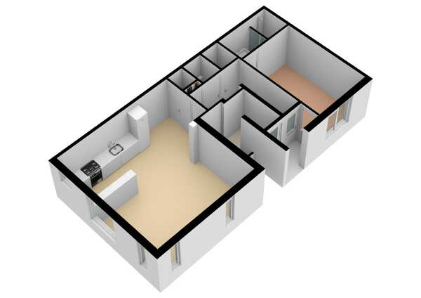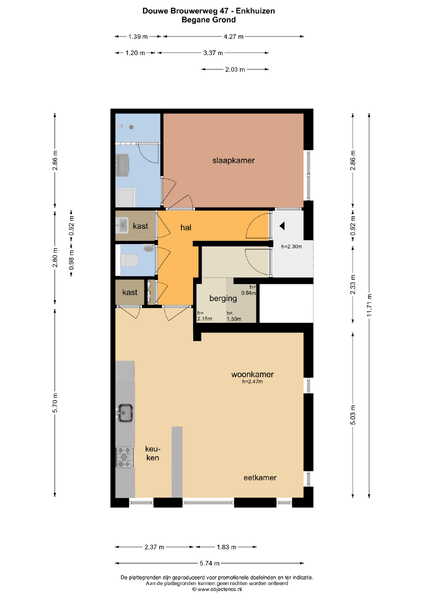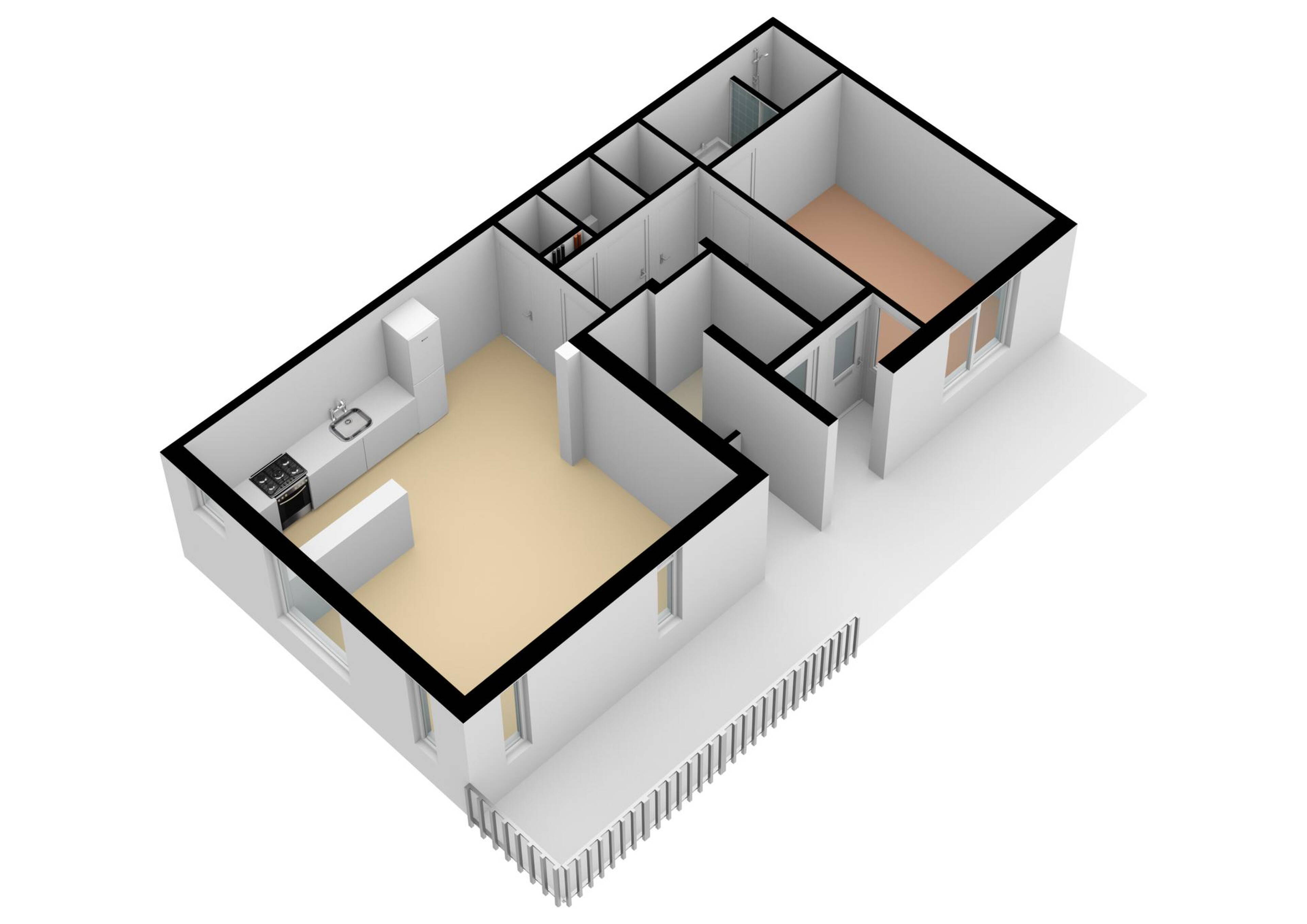 Bij binnenkomst in de hal treft u de garderobe aan, de toegang tot de slaapkamer, de berging met CV ruimte, het toilet, de meterkast en de woonkamer met open keuken.