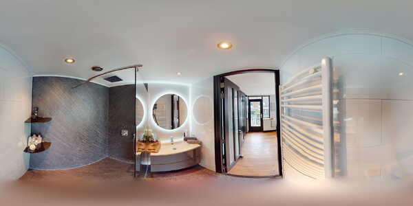 Badkamer: de volledig betegelde moderne luxe badkamer is voorzien van een inloopdouche met stortdouche, handdouche met drain en een wastafelmeubel. Uiteraard ontbreekt een design-radiator hier ook niet.