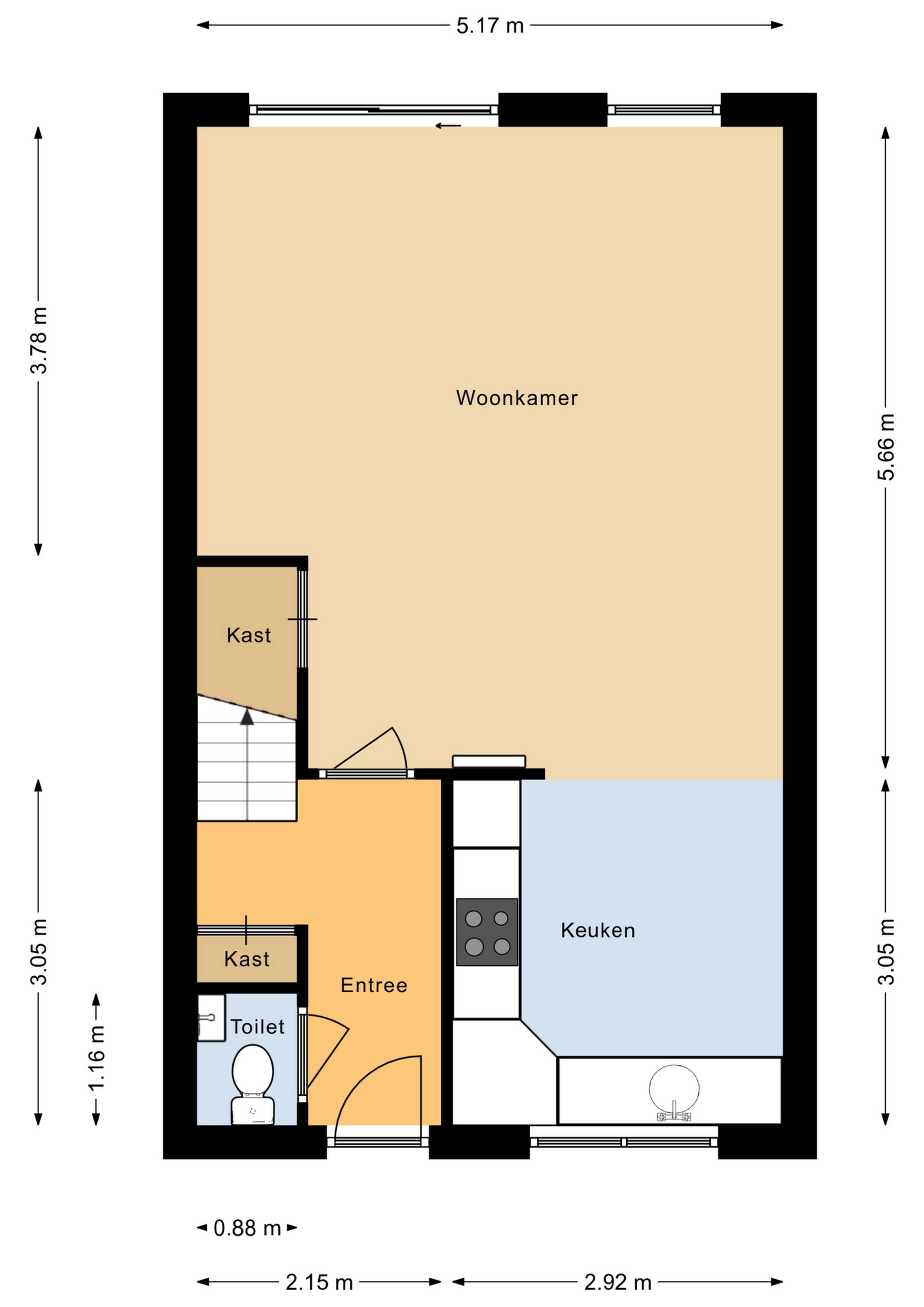 Begane grond: aan de voorzijde van de woning betreedt u de hal van de woning. De hal geeft toegang tot de functionele toiletruimte met toilet en fonteintje, de woonkamer en trapopgang naar de verdieping. Verder treft u hier de meterkast en de garderoberuimte.