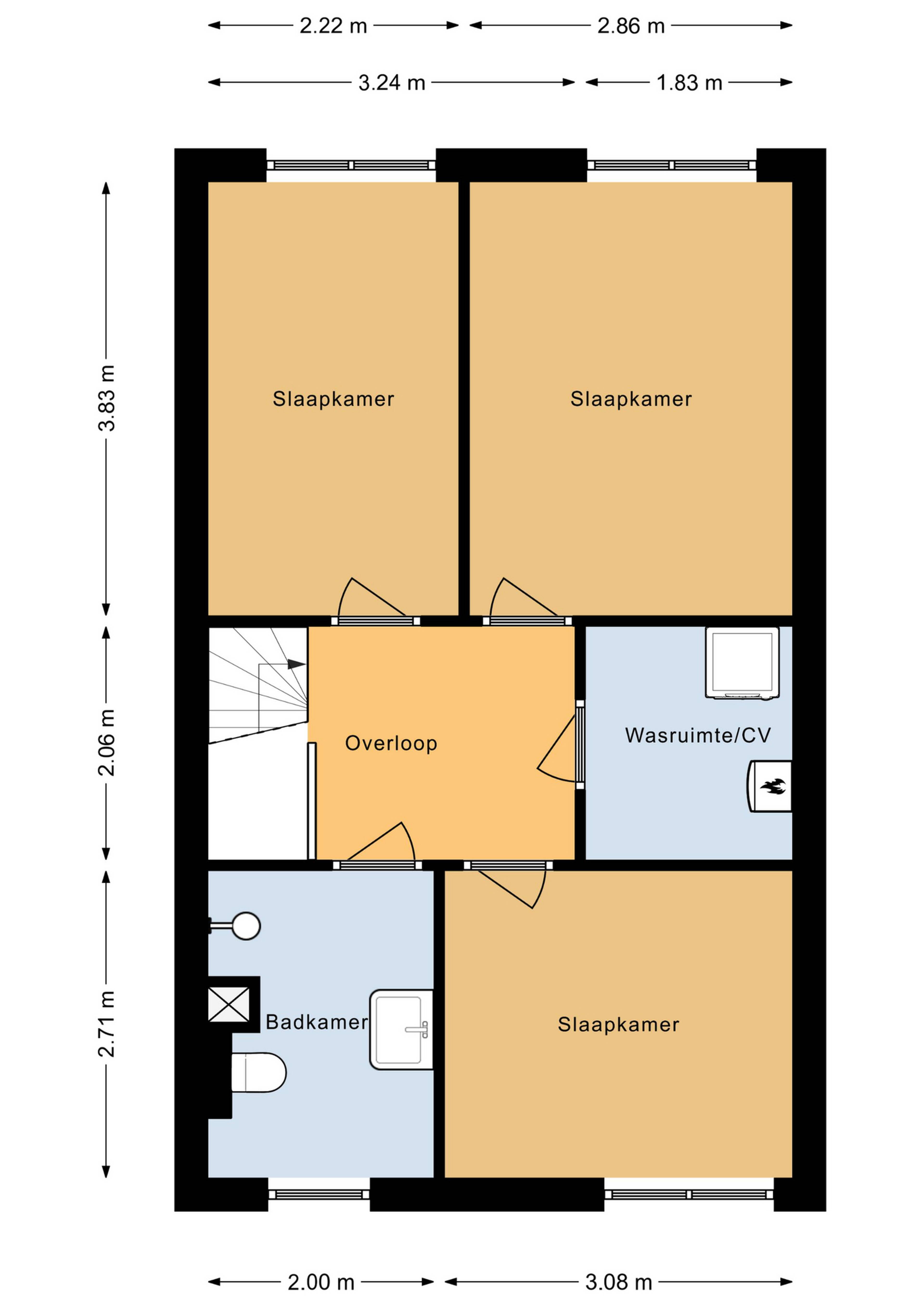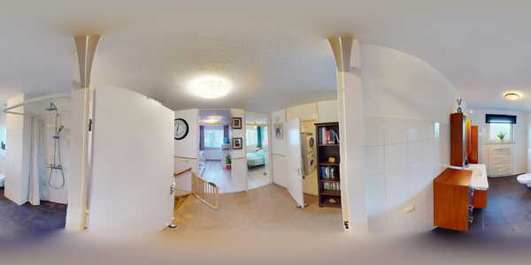1e verdieping: op de 1e verdieping zijn 3 slaapkamers van verschillende afmetingen ingedeeld. Eén van de voordelen van de opvallende architectuur van de woning is het gegeven dat u op deze verdiepingsvloer recht opgetrokken wanden heeft. U heeft hierdoor veel binnenruimte tot uw beschikking! Alle slaapkamers zijn voorzien van elektrisch bedienbare rolluiken. Heerlijk om de slaapkamers koel te houden op warme zomerdagen. Op de overloop heeft u extra bergruimte tot uw beschikking. In deze bergruimte treft u de CV-combiketel, maar u vindt hier ook de aansluiting voor de wasmachine. Dan heeft u nog voldoende ruimte voor het bergen van overtollige spulletjes.