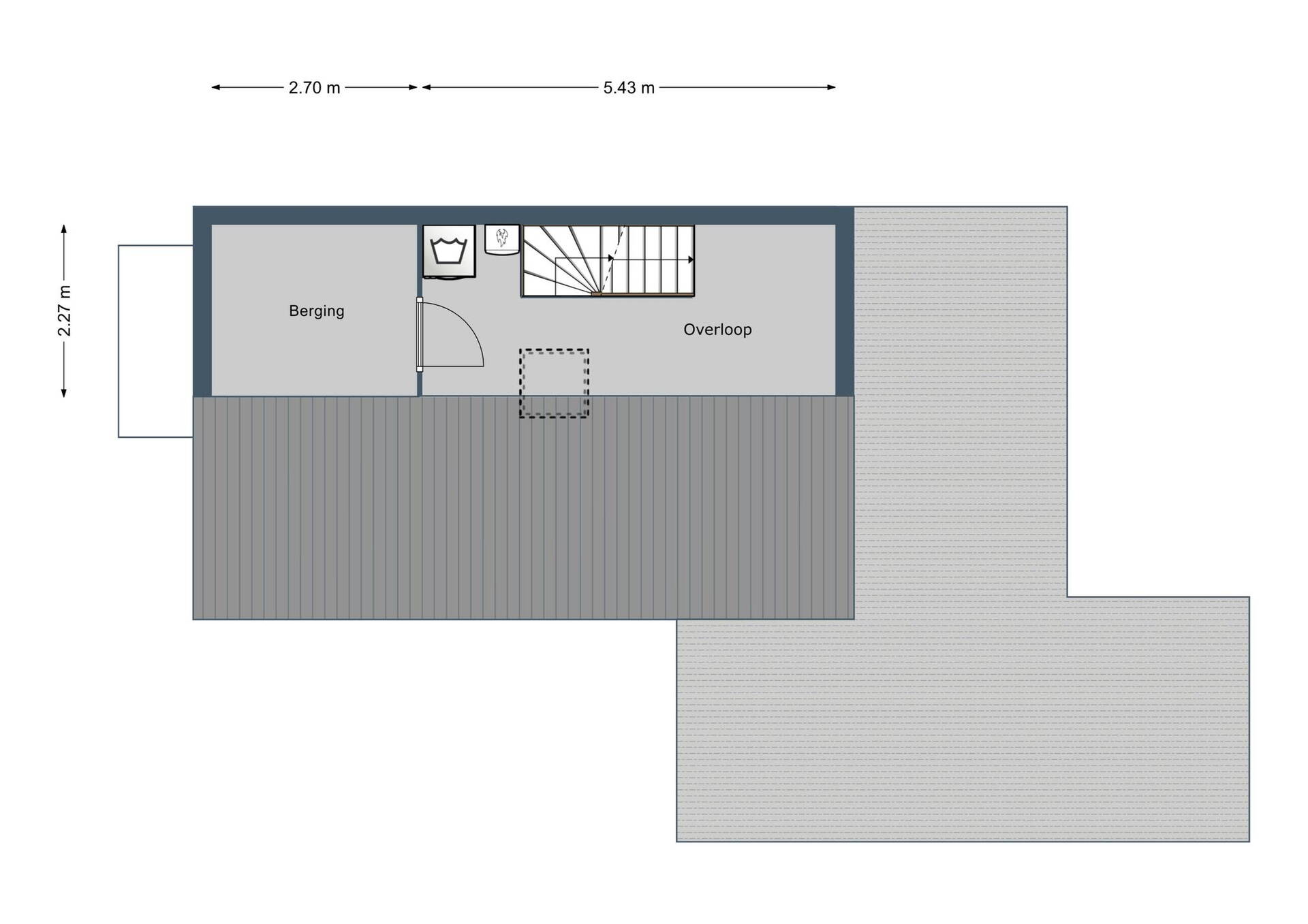 Op de 2e verdieping bevindt zich de open zolderruimte met de cv-opstelling, de mechanische ventilatie en de aansluiting voor de wasmachine en de droger. Hier is eventueel eenvoudig een 4e slaapkamer te creëren.