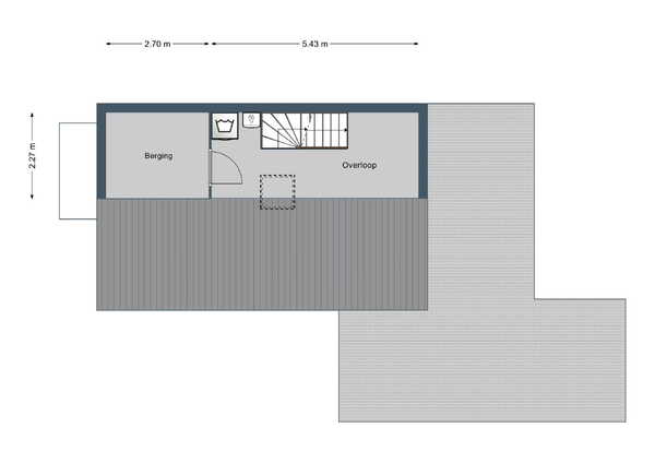 Thans is er een berging die dienst doet als speelruimte. Met het plaatsen van een raam zou dit ook een fijne werkplek kunnen zijn.