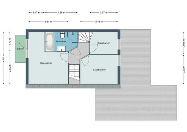 Op de 1e verdieping bevinden zich een 3-tal slaapkamers van verschillende afmetingen. De grootste slaapkamer ligt aan de voorzijde van de woning en is voorzien van een klein balkon dat de woning een hele leuke uitstraling geeft.
