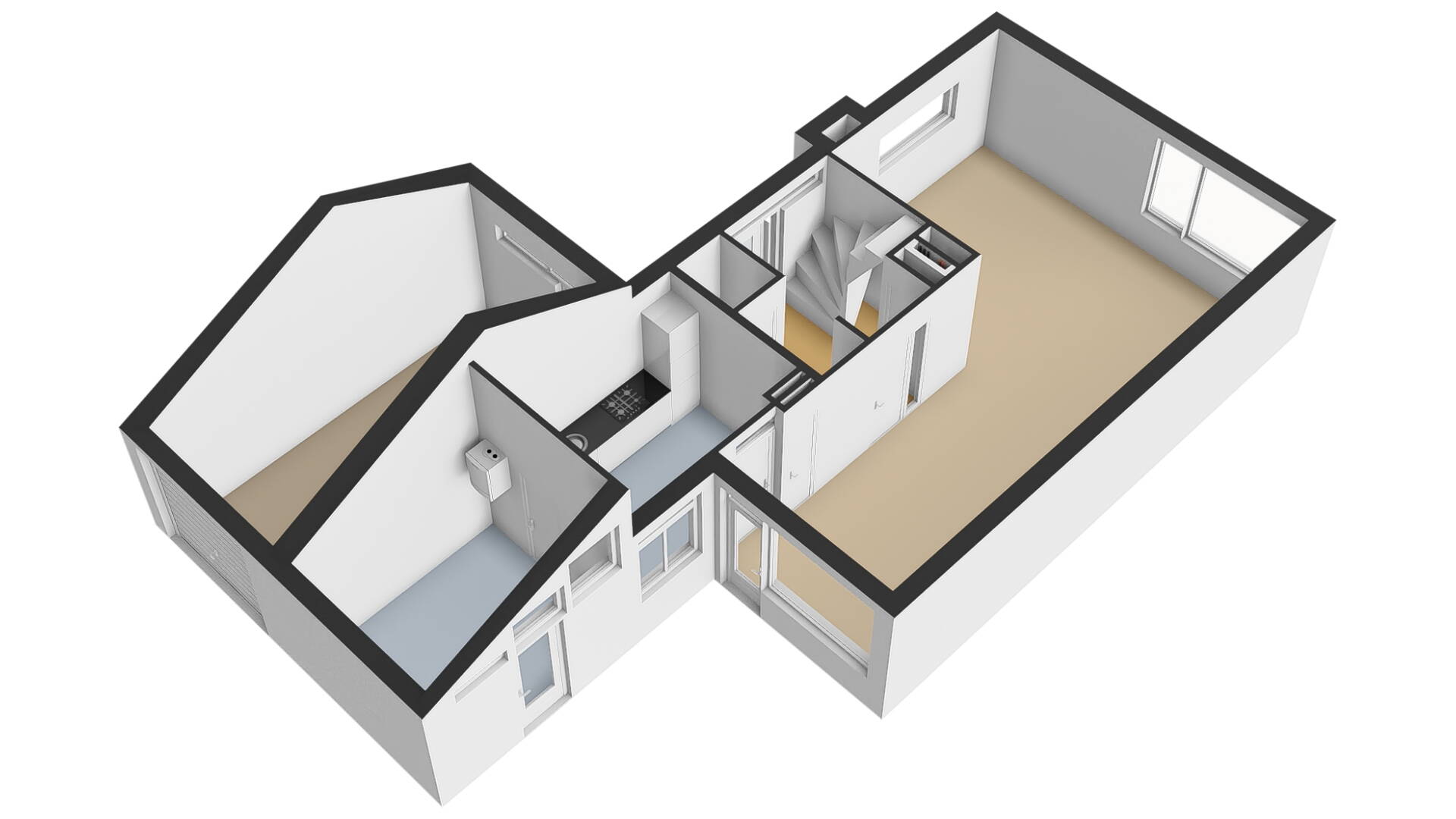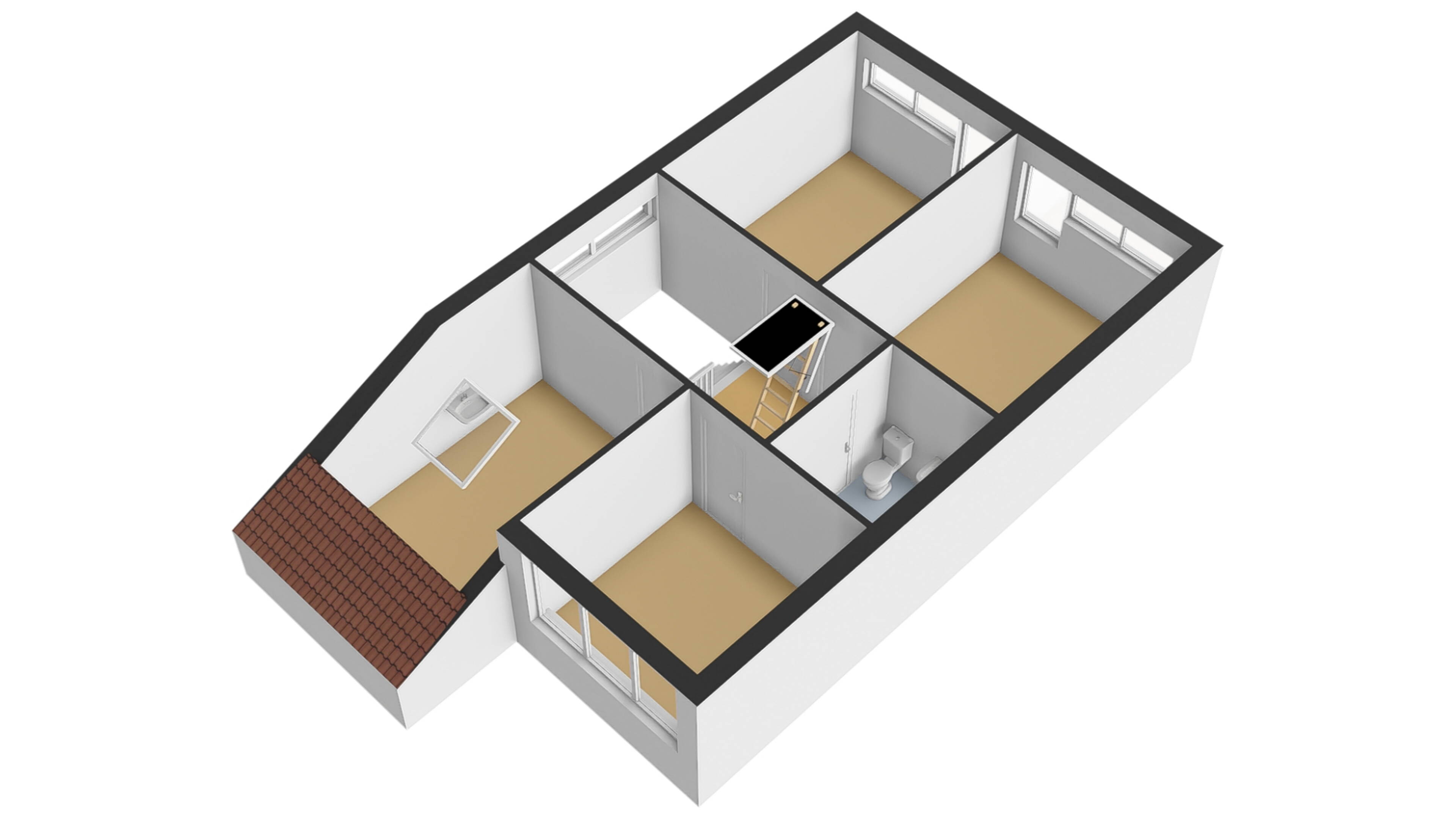 2e verdieping: via een vlizotrap komt u op de deels bevloerde bergzolder, waar u een flinke bergruimte tot uw beschikking heeft.
