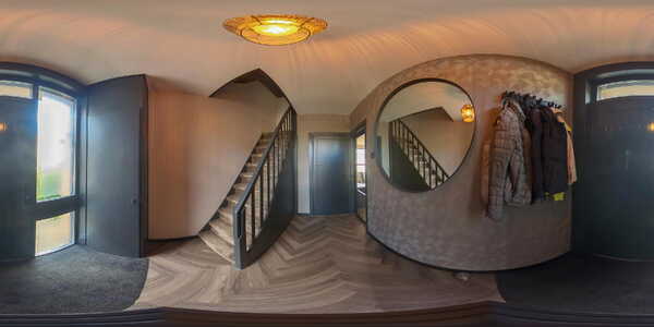 Als we de woning betreden via de voordeur, komen we uit in de statige hal, waar direct de pvc-visgraatvloer in het oog springt.