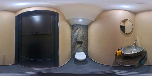In de hal vinden we een toiletruimte met hangcloset en een speels fonteintje terug, die ook weer op zeer fraaie wijze is afgewerkt met een kunststof plaat met marmermotief. De (recent aangepaste) meterkast waar we meer dan genoeg groepen aantreffen om alles in huis op de juiste wijze van stroom te voorzien en een trapkast waar u vele (schoonmaak)spulletjes kwijt kunt. In de trapkast zit ook het kruipluik, dat naar de goed geïsoleerde kruipruimte leidt.