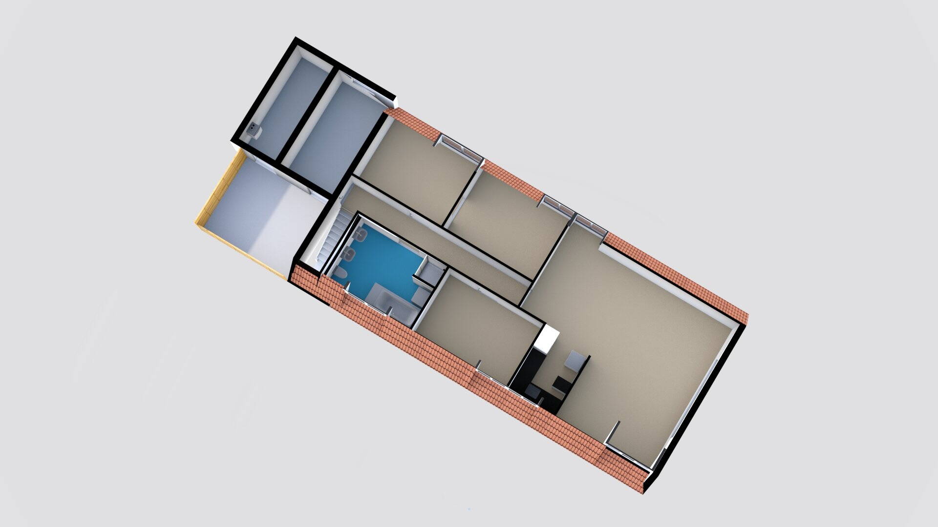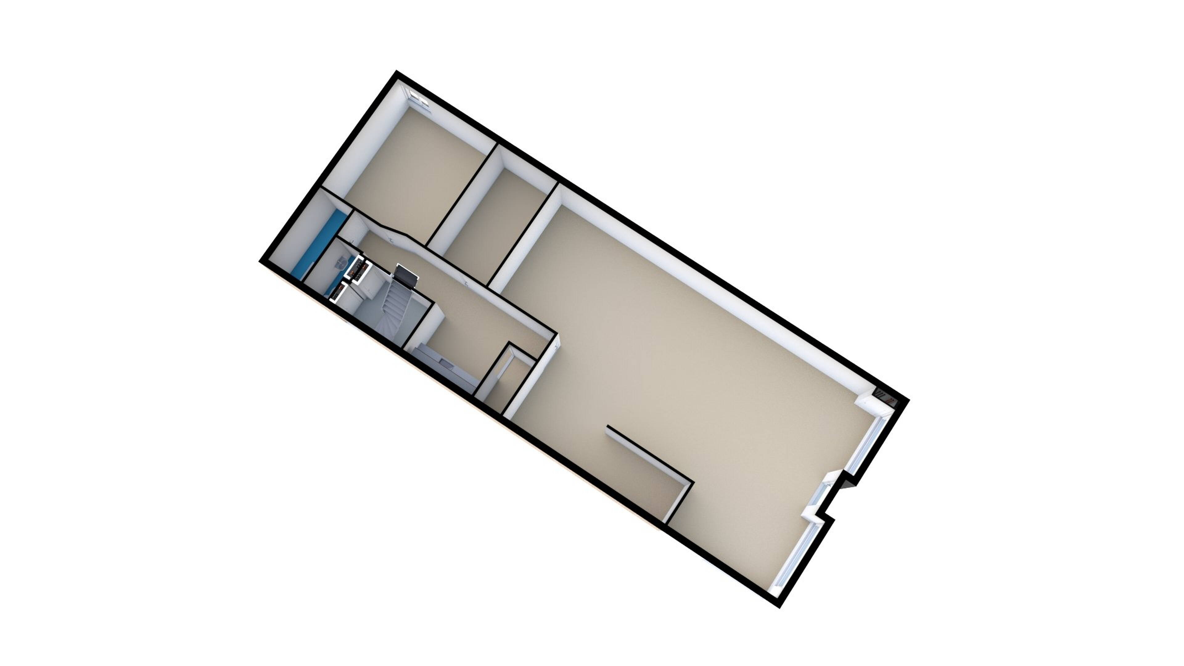 Aan de voorzijde van het object op de 1e etage is een flinke bovenwoning met apart huisadres gesitueerd. Met een woonoppervlakte van ca. 95 m² ook een fijne ruime bovenwoning. Voorzien van 3 tot 4 slaapkamers, ruime woonkamer, keukengedeelte en een hoog plafond. De keurige badkamer is ook compleet uitgerust. Het appartement beschikt over een bescheiden dakterras.