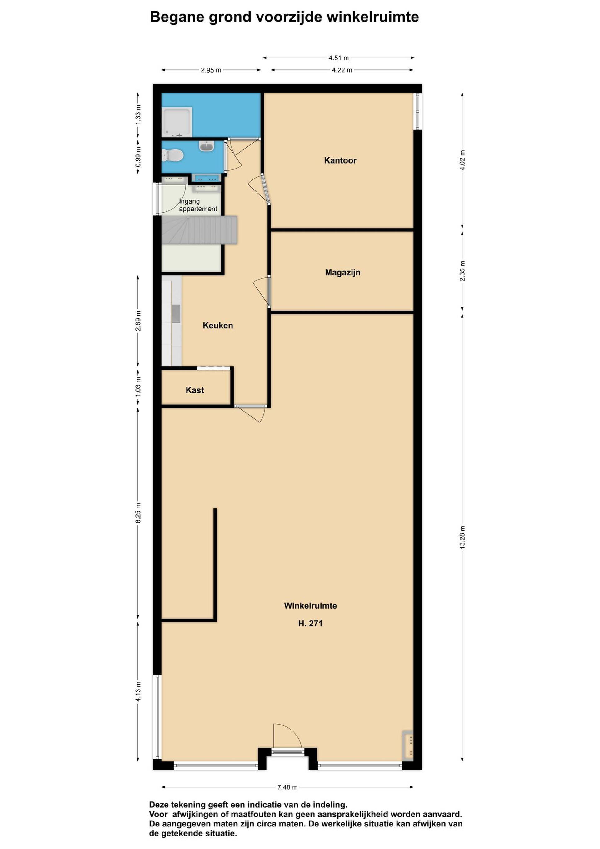 Aan de voorzijde van het pand is het winkelgedeelte gelegen. Met een flinke gevelbreedte, veel glasoppervlak en een gebruiksoppervlakte van ca. 143 m² een heerlijke ruimte om te ondernemen. Naast het winkelgedeelte is hier ook een keukengedeelte, functionele badkamer, separaat toilet en een kantoor en magazijn aanwezig. Bovendien is er veel bergruimte gecreëerd. De huidige huurder Happy Sushihuis onderneemt hier dan ook naar volle tevredenheid.