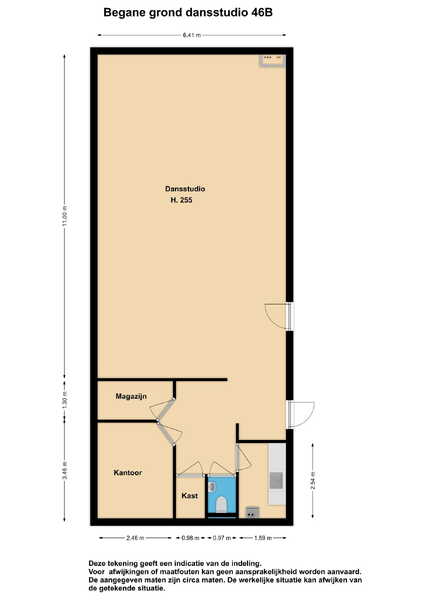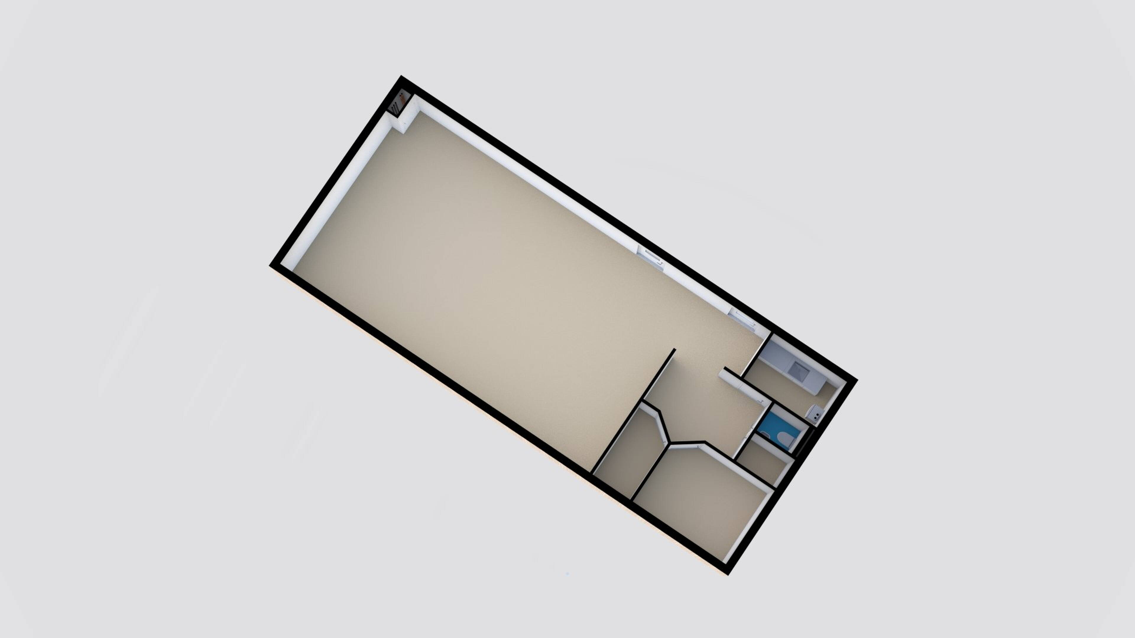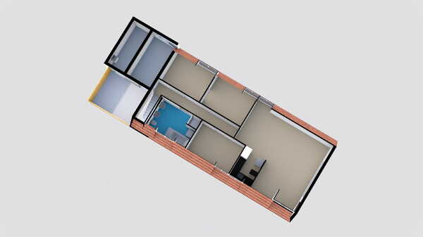 Aan de achterzijde van het pand is een 2e bedrijfsruimte/kantoor/praktijkruimte gelegen. Thans ingericht als woongedeelte met apart huisadres. Met een woonoppervlakte van ca 63 m² + ca. 23 m² overige inpandige ruimte, dat thans als sport/fitness kamer in gebruik is genomen. Naast de gecombineerde woonkamer, keuken en eetgedeelte, zijn er ook een 2-tal slaapkamers en een ruime, functionele, badkamer aanwezig.