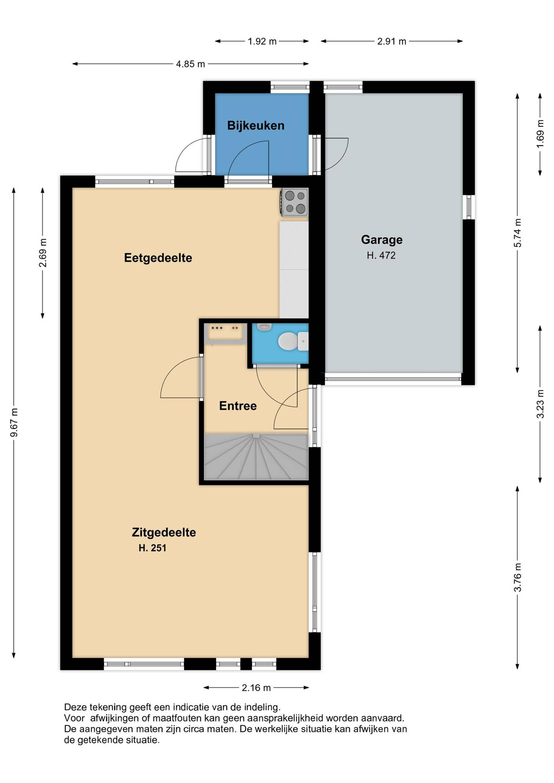 Begane grond: via de zijentree komt u in de ruime hal met garderoberuimte, meterkast en toiletruimte met closet en fonteintje. Via de centrale hal kunt u toegang verkrijgen tot het woonvertrek en de bovenliggende etages.