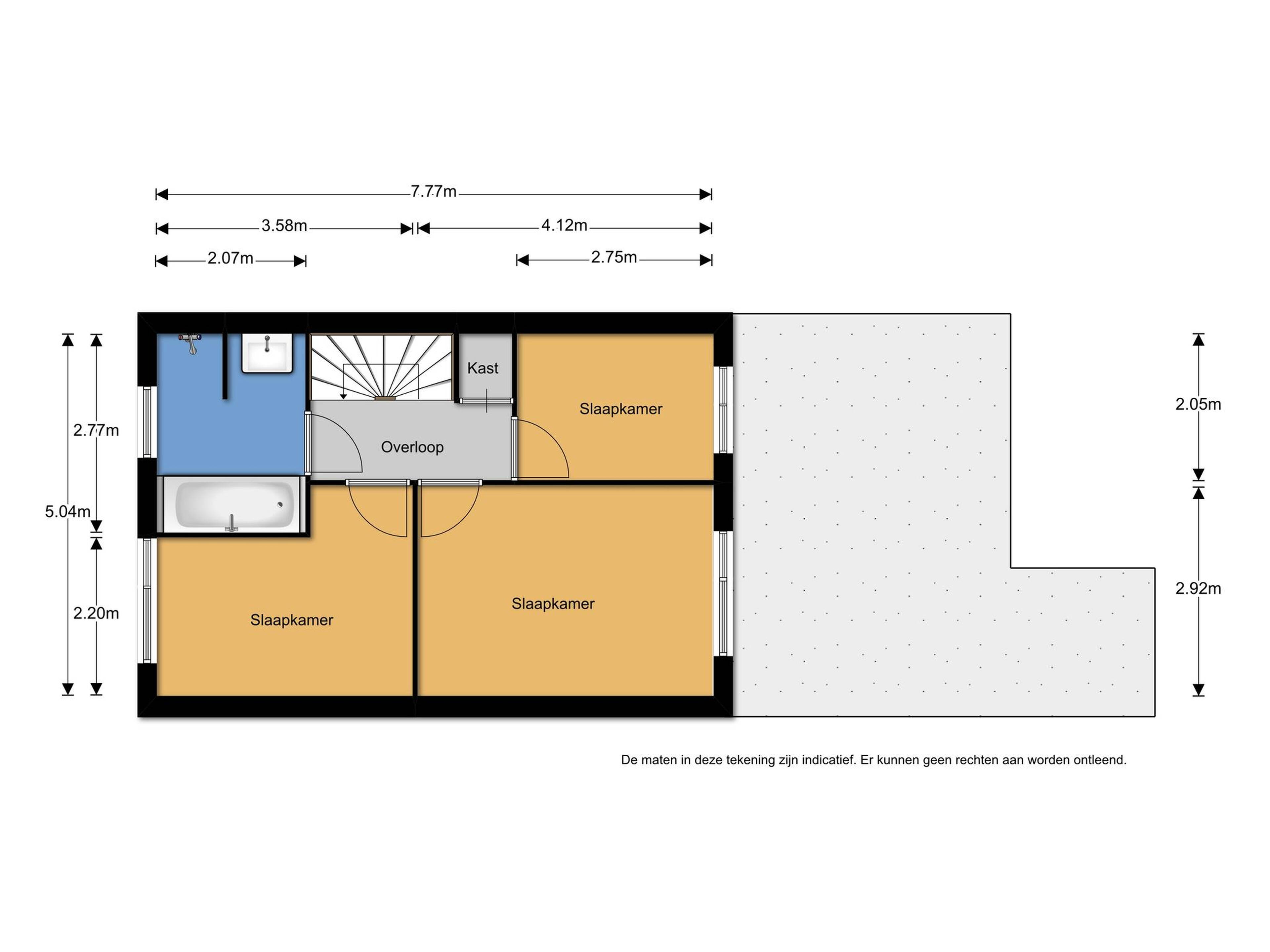 Op de overloop is een trapkast en de toegang tot de 3 slaapkamers en de badkamer op deze verdieping.