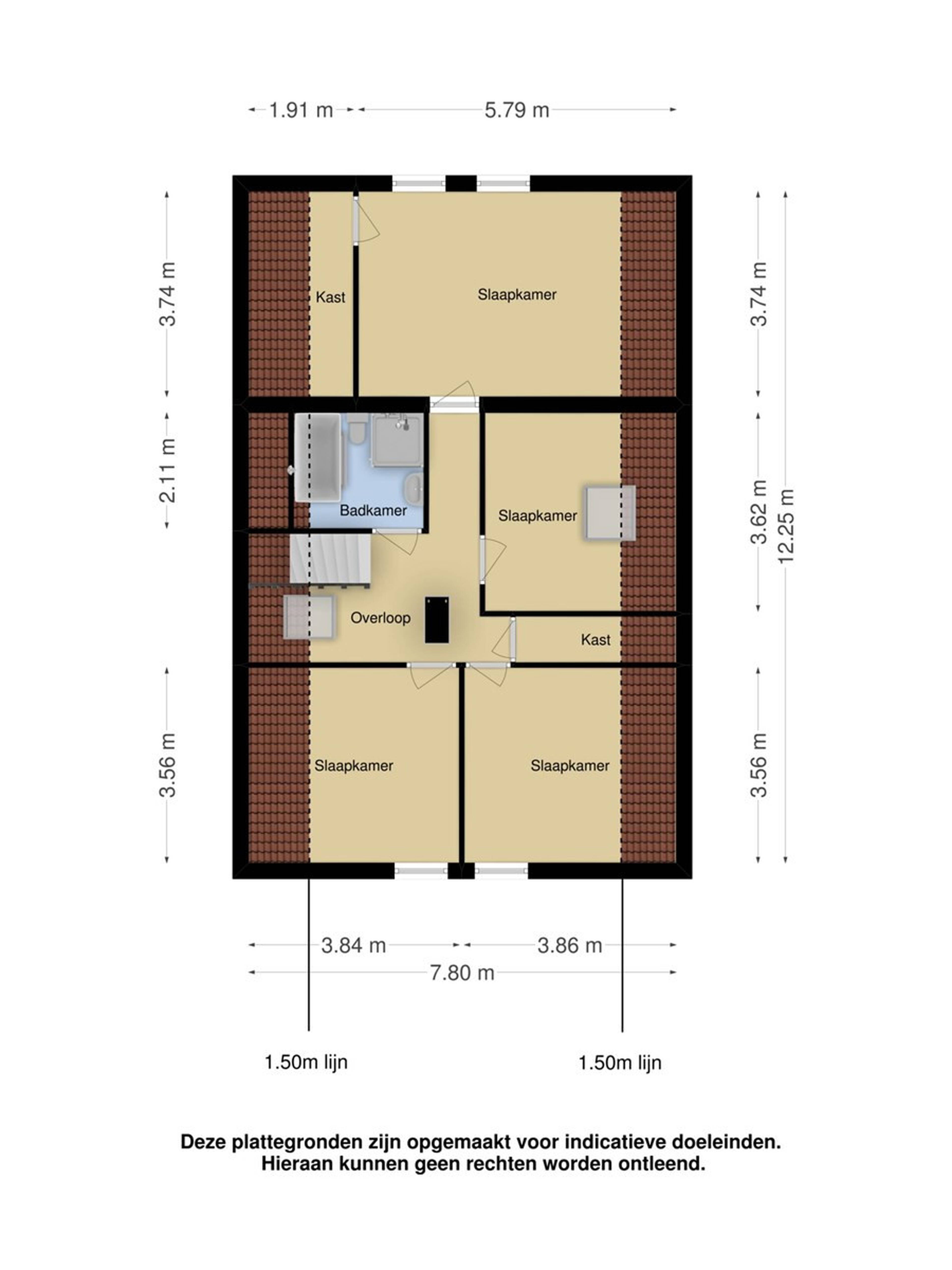 Op de 1e verdieping bevinden zich 4 slaapkamers en de moderne badkamer. Aan de achterzijde van de woning, over de gehele breedte, ligt de grootste slaapkamer. Daarnaast zijn er nog 2 mooi bemeten slaapkamers aan de voorzijde van de woning en 1 aan de zijkant van de woning. Deze laatste kamer is thans in gebruik als kantoorruimte en is voorzien van een dakraam.