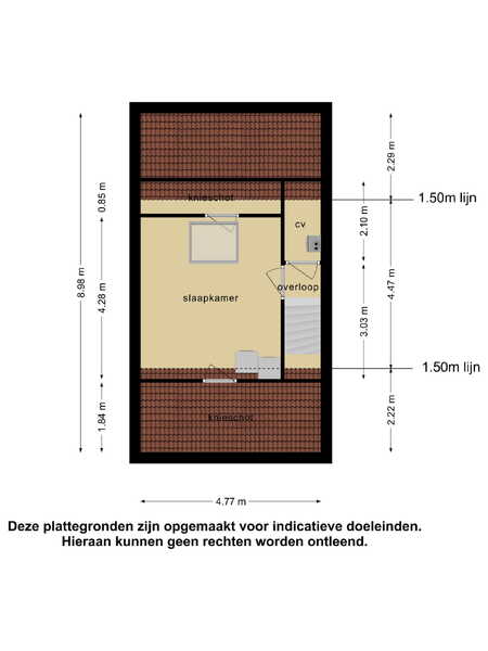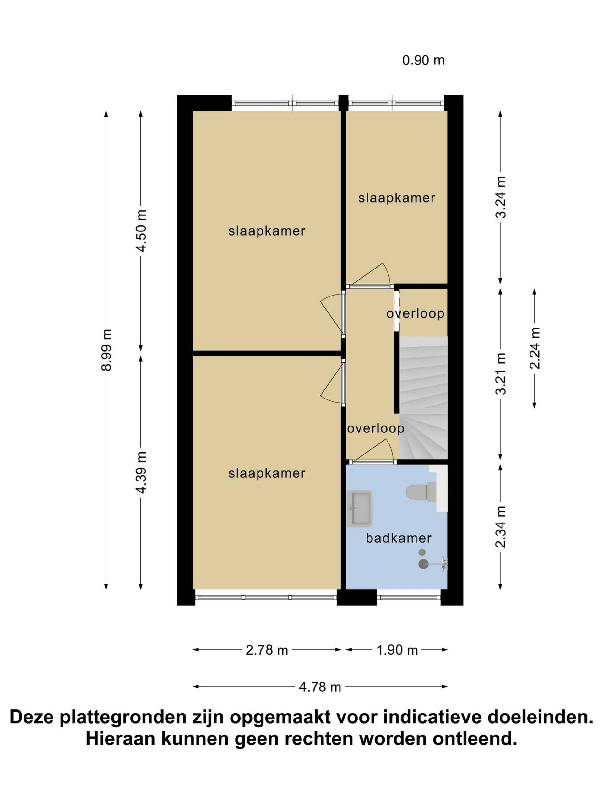 Op de 1e verdieping bevinden zich 2 ruime slaapkamers waar met gemak een 2-persoonsbed in past en een kleine 1-persoons slaapkamer, waar u uw eigen inloopkast zou kunnen plaatsen. Op de zolderverdieping is een 4e zeer ruime (slaap)kamer, met o.a. de aansluiting van wasmachine en droger. Dit zou een mooie werk-/hobbykamer kunnen worden.
