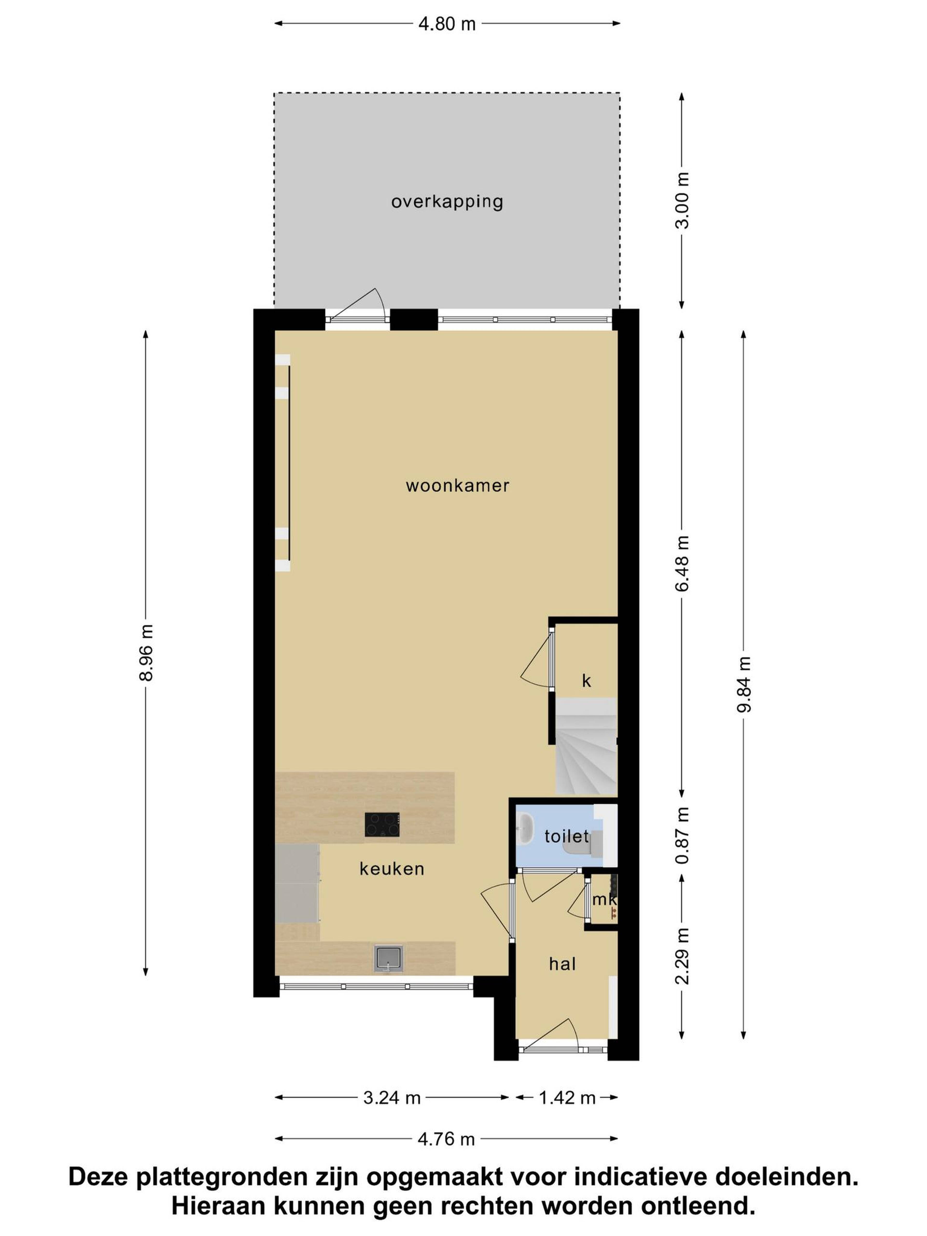 - Aan voorzijde keukenblok: mogelijkheid barkrukken te plaatsen