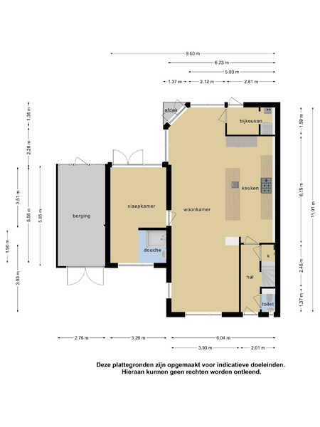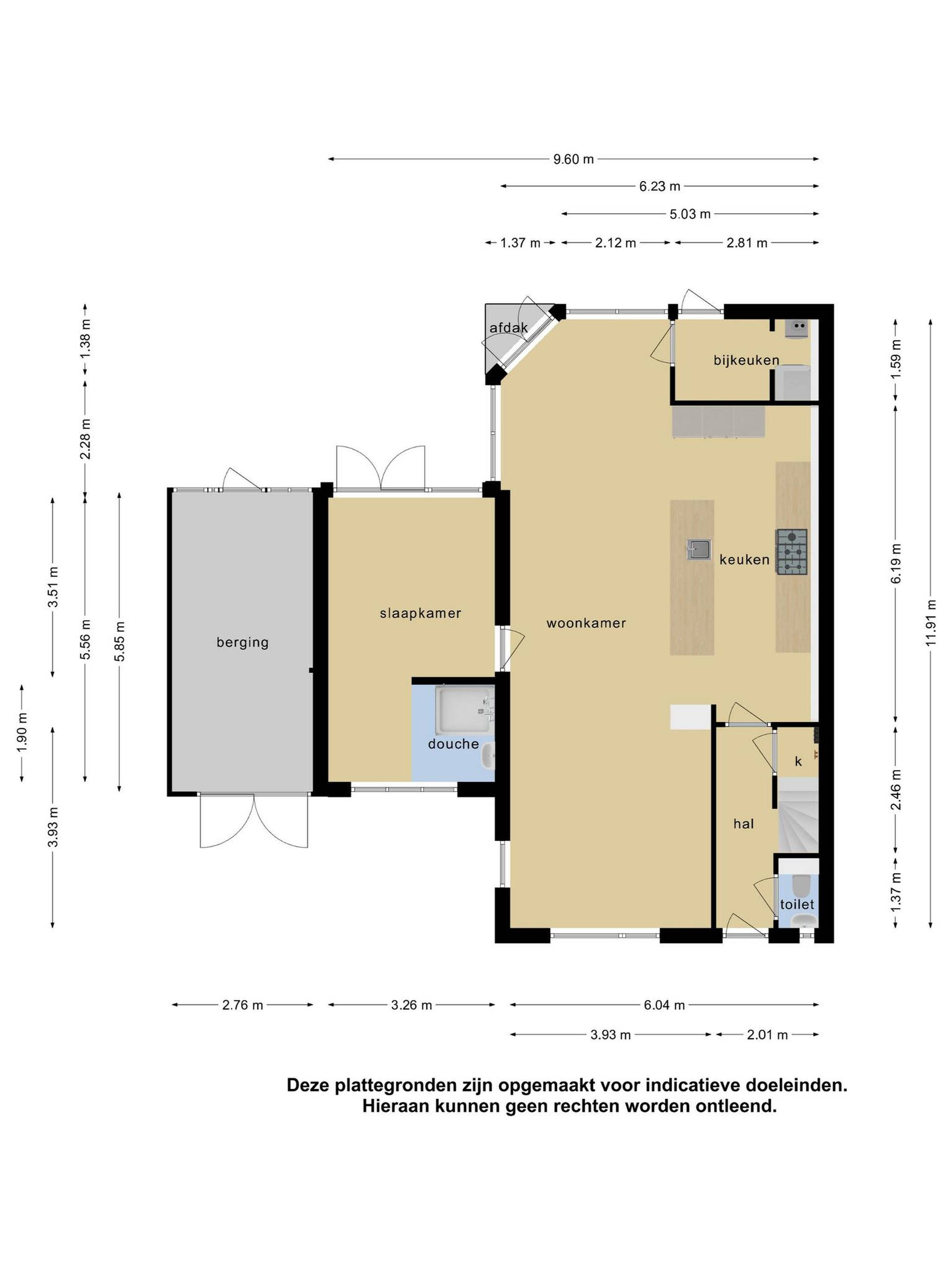 Vanuit de keuken loopt u naar de bijkeuken met de opstelling van de cv-installatie en de wasmachine- en de drogeraansluitingen. De losse kasten in de slaapkamer op de begane grond en in de bijkeuken blijven achter in de woning.