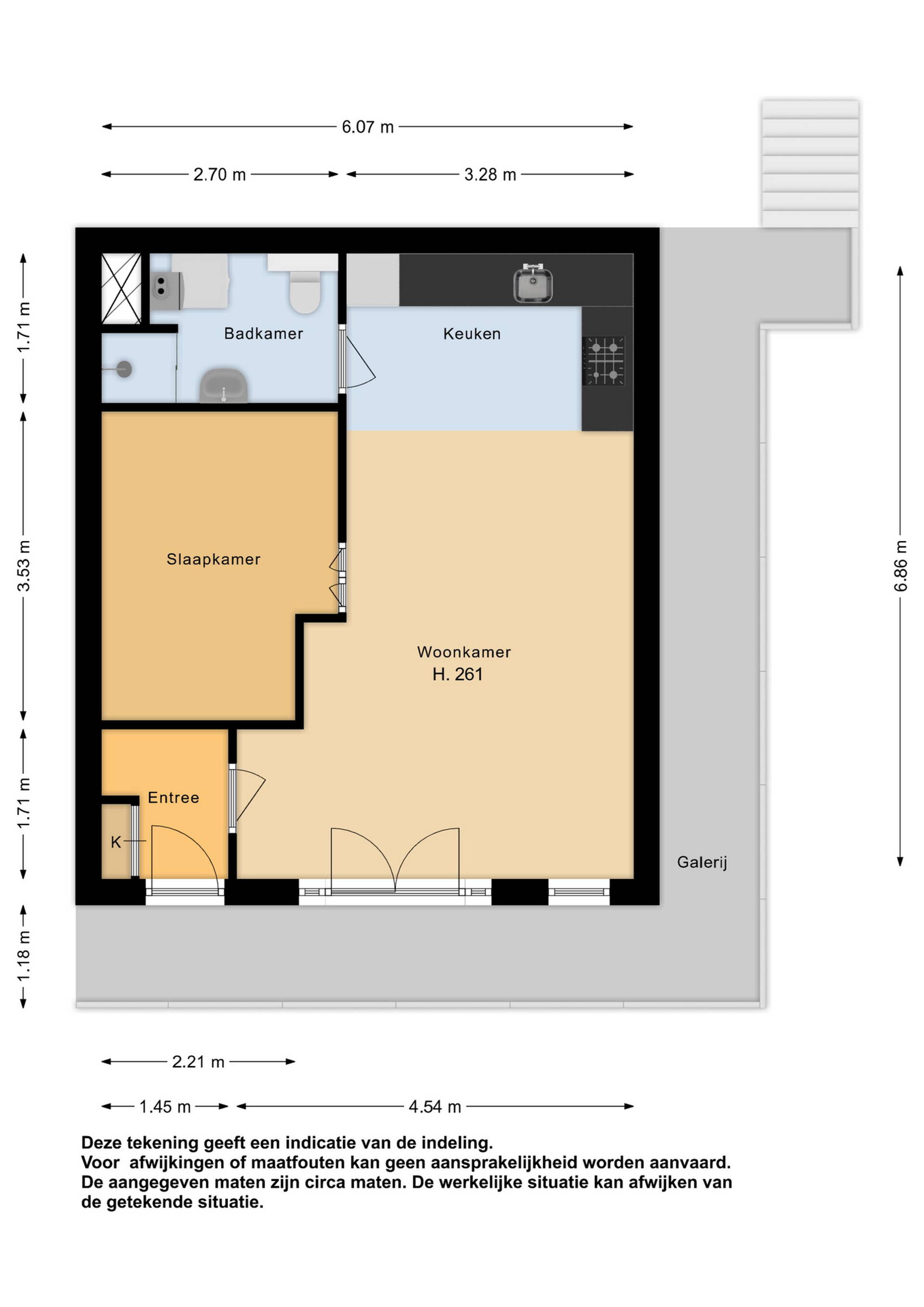 Indeling: via de entree komt u in de hal met meterkast en garderoberuimte.