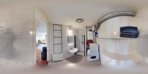 Badkamer: De badkamer is volledig betegeld in een lichte kleurstelling. De badkamer is voorzien van een douchegelegenheid, wastafel en hangcloset. U zult in de badkamer aansluitmogelijkheden aantreffen voor een wasmachine. Tevens is hier ook de CV opstelling aanwezig en heeft u een extra bedieningsmogelijkheid voor de mechanische ventilatie.