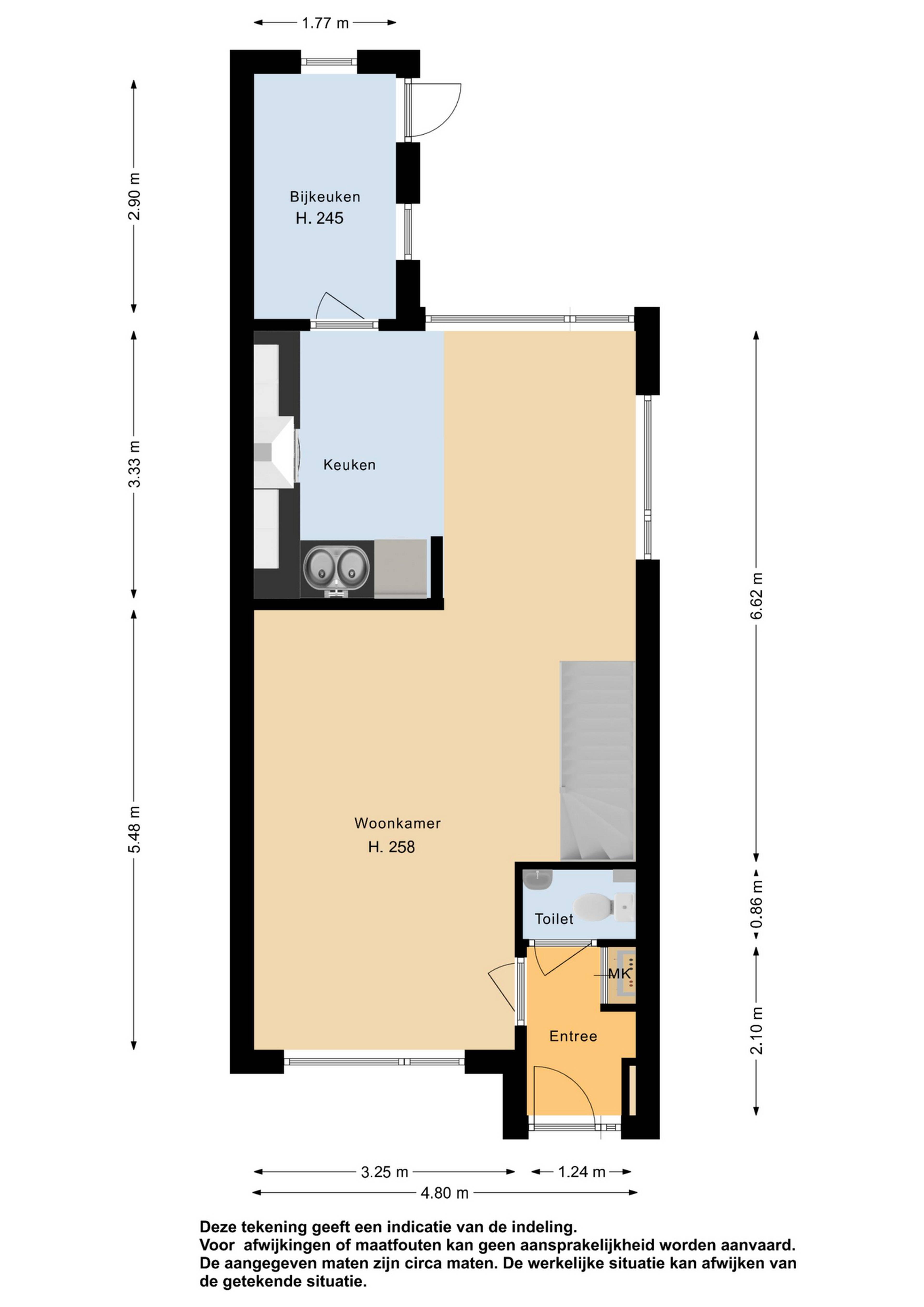 Door de hoekligging heeft u in de zijgevel extra een raam tot uw beschikking. De praktische indeling biedt u de mogelijkheid om op diverse wijzen uw interieur in te delen. Via de vaste trap in de woonkamer kunt u de 1e verdieping bereiken.