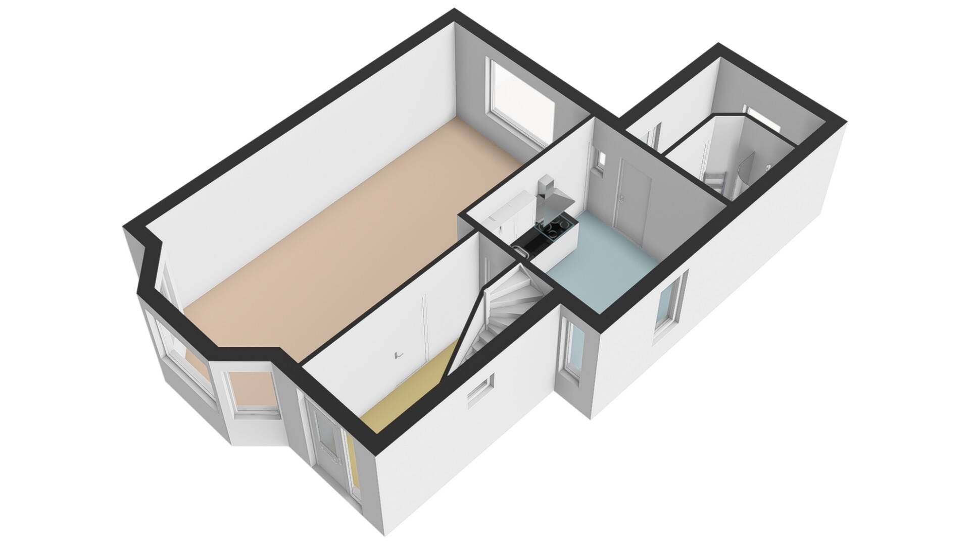 De lichte en zonnige woonkamer biedt u aan de voorzijde met de erker een kijkje de straat in en aan de achterzijde zicht op de achtertuin. Door de praktische indeling kunt u op diverse wijzen uw interieur inrichten. De erker geeft een speels effect aan de woonkamer. Zeer plezierig is ook het feit dat de erker volledig voorzien is van kunststof kozijnen met fraaie plissé raambekleding.