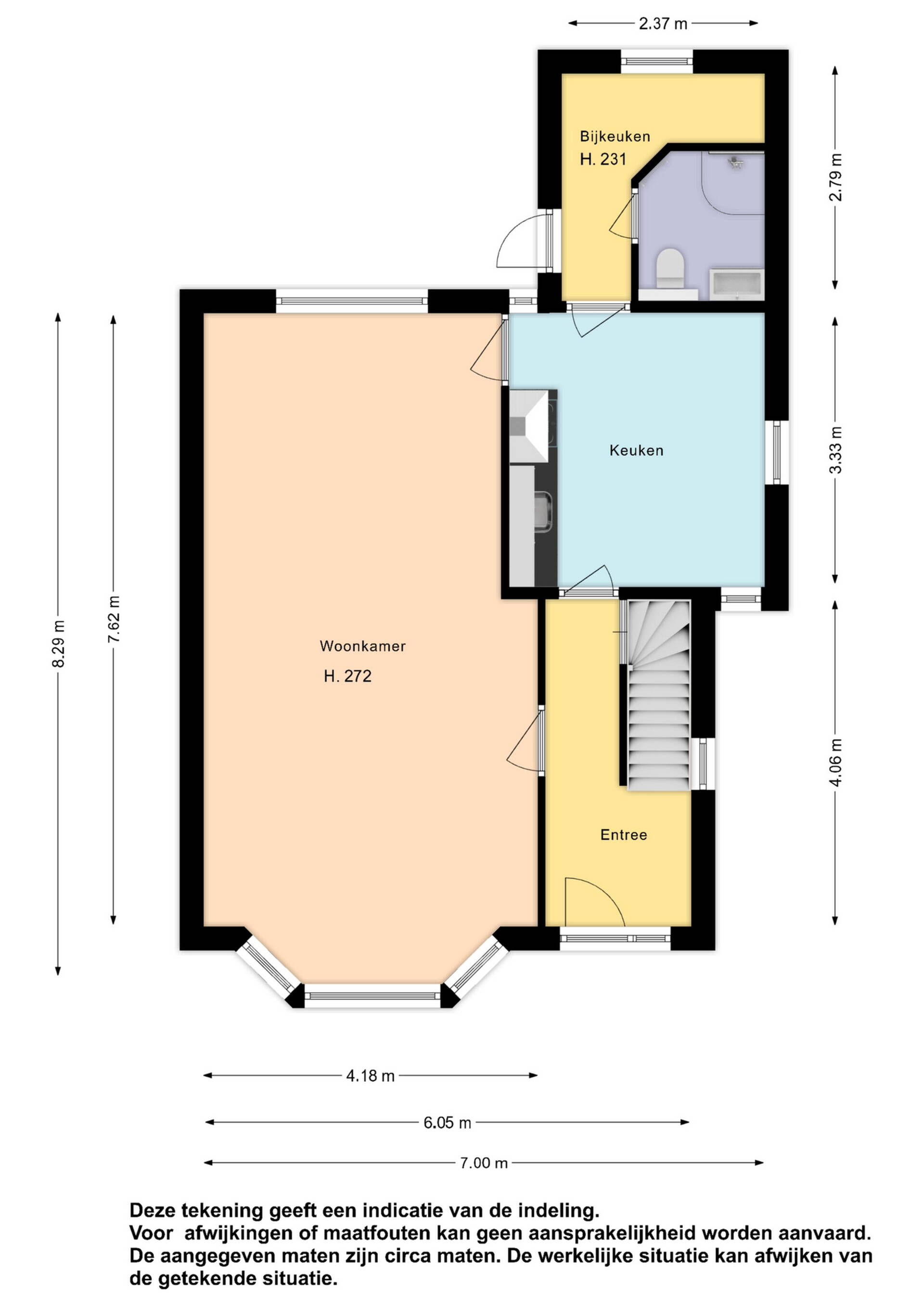 Begane grond: via de entree aan de voorzijde komt u in de hal met toegang tot de diverse vertrekken van de woning. U treft hier tevens de trapkast met meterkast aan.
