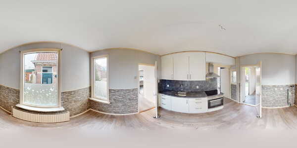 De besloten keuken is een heerlijke lichte keuken doordat deze fijn voorzien is van diverse ramen. U kunt in deze keuken prima een tafeltje plaatsen, zodat u hier ook fijn uw ontbijtje kunt nuttigen. De keuken in lichte kleurstelling is in een rechte opstelling uitgevoerd. Aan inbouwapparatuur zijn een afzuigkap, inductiekookplaat en een elektrische oven aanwezig. U kunt hier ook een vaatwasser plaatsen. Via de keuken kunt u de naastgelegen bijkeuken bereiken.