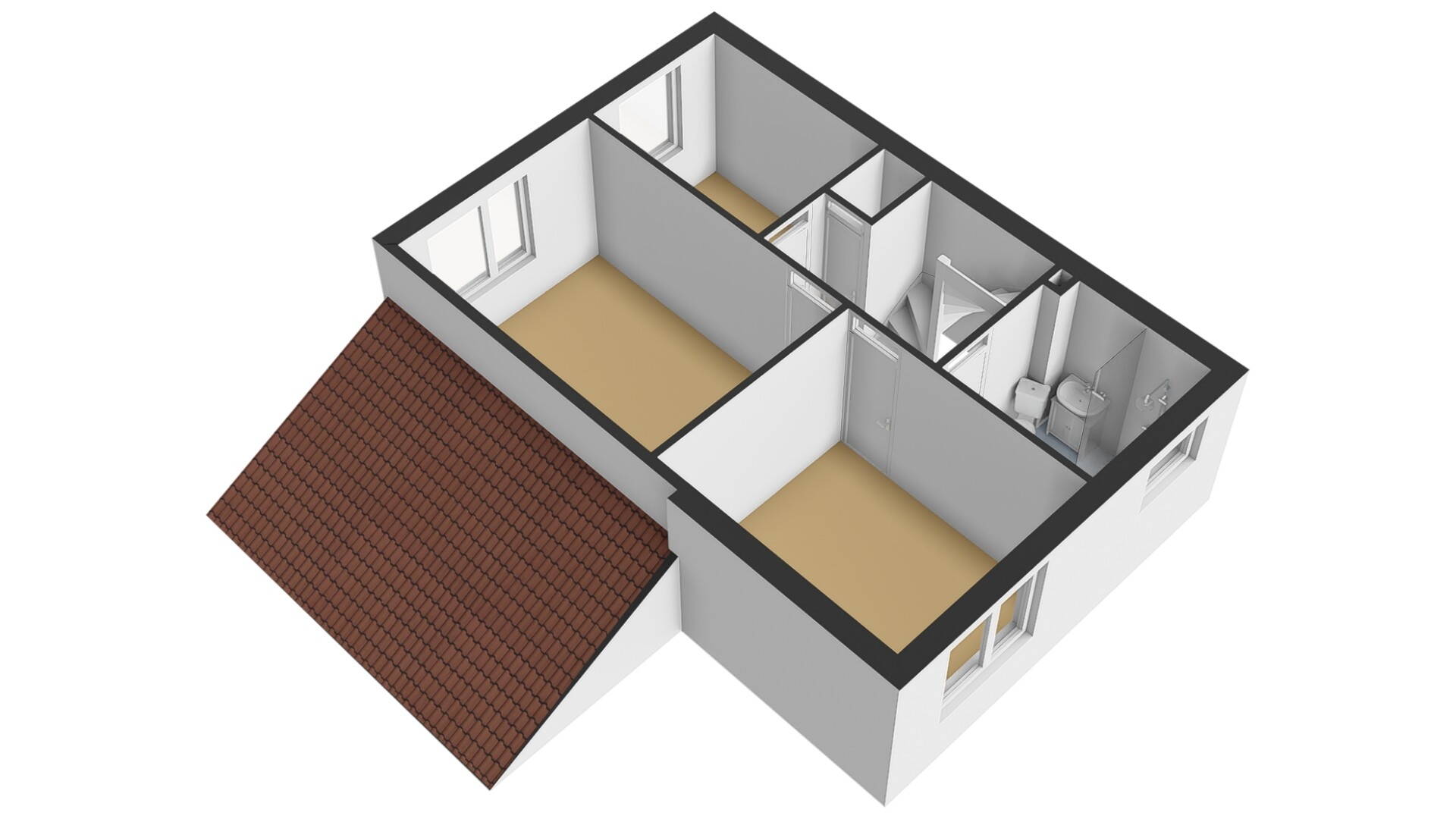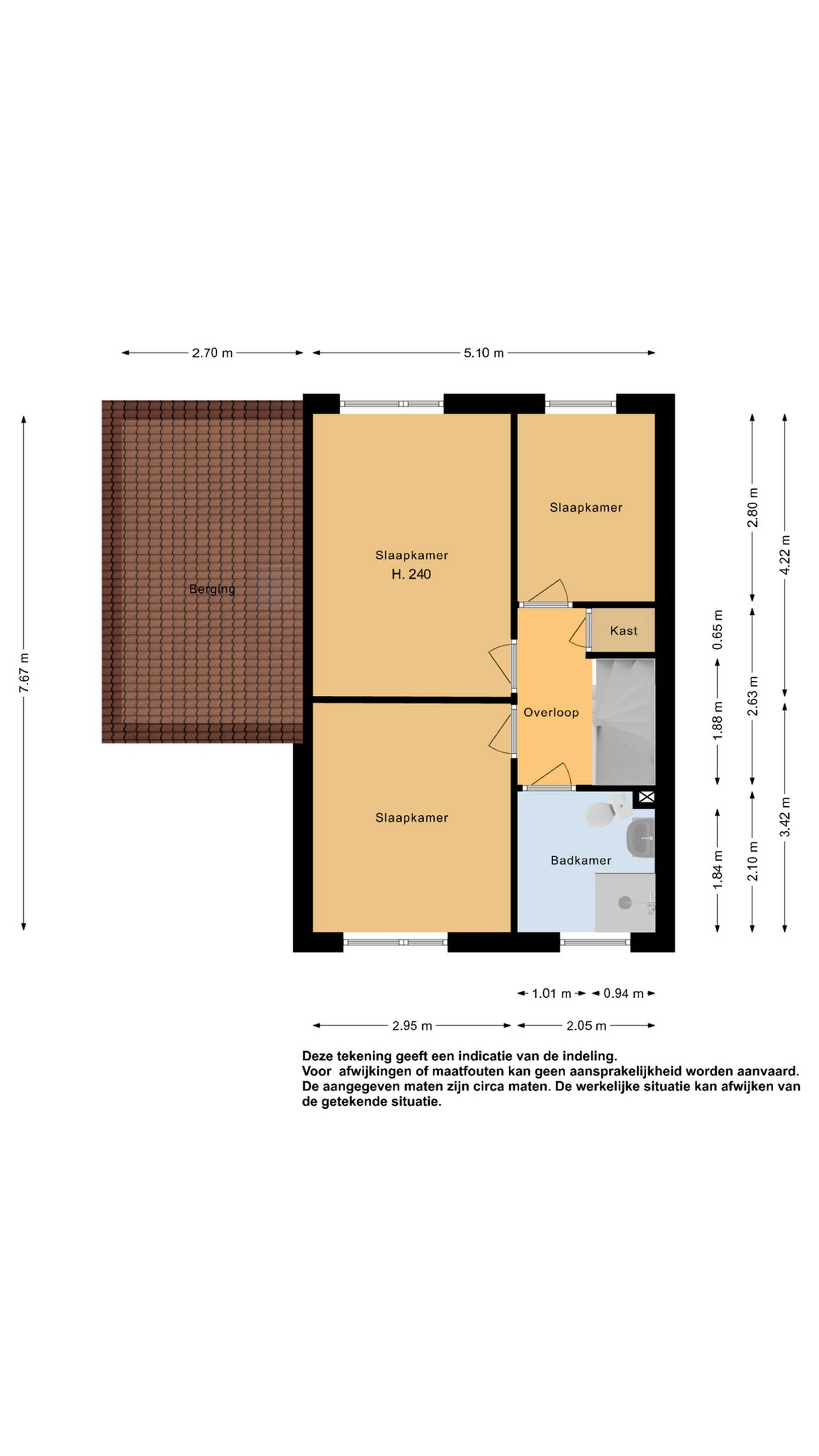1e verdieping: op de 1e verdieping zijn 3 slaapkamers van verschillende afmetingen gesitueerd. De slaapkamers hebben recht opgetrokken wanden, zodat u de ruimte optimaal kunt benutten. Inclusief de 2e verdieping kunt u in 3 slaapkamers een 2-persoonsbed kwijt. Op de overloop is bovendien een handige vaste kast aanwezig.