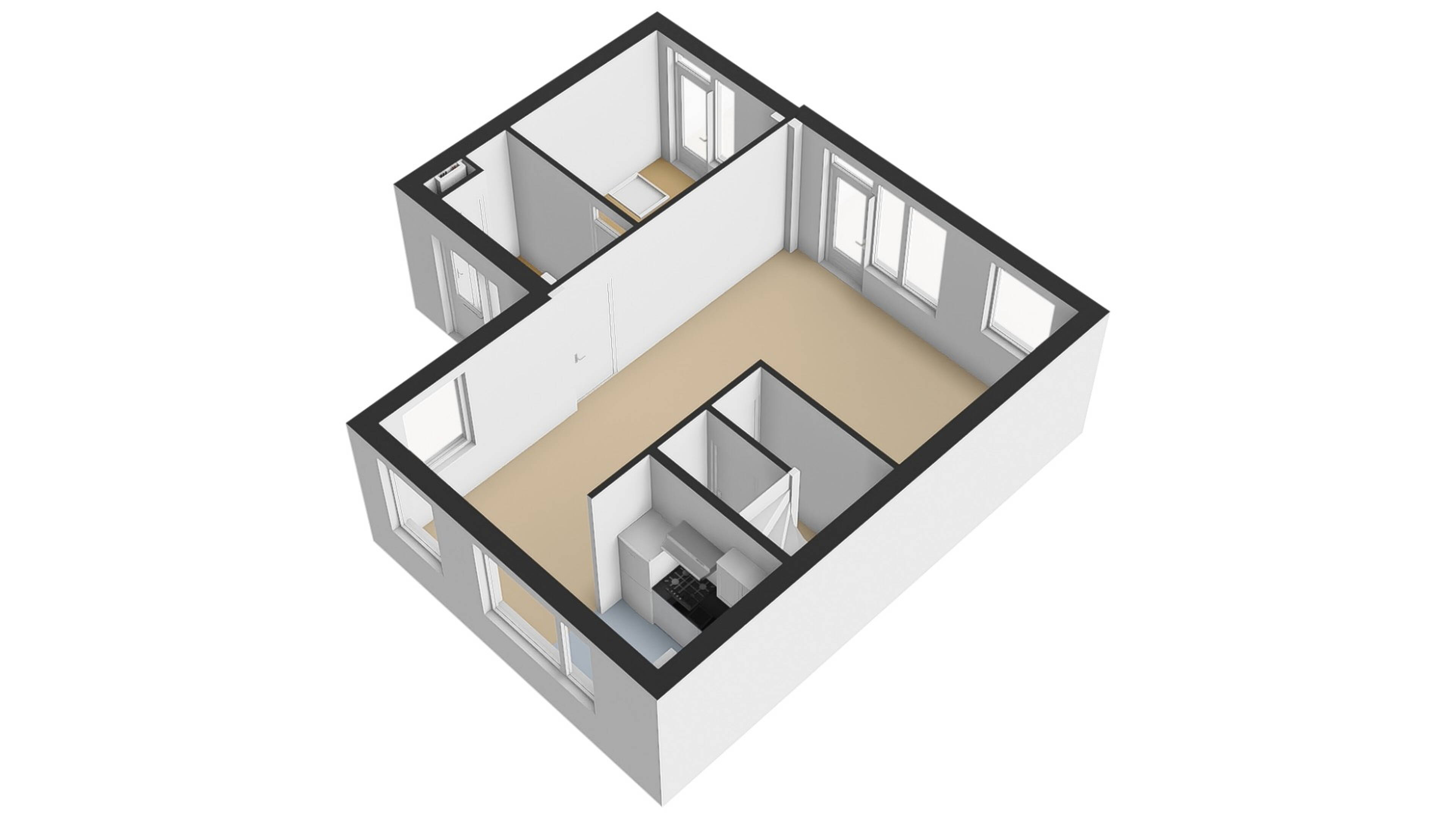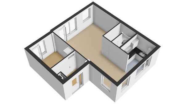 Aan de voorzijde van de woning treft u een functionele keuken, die in L-vorm is geplaatst. De keuken is voorzien van een gas/ovencombinatie, afzuigkap en een losse koel/vriescombinatie. Verder is er naast de keuken voldoende ruimte voor een flinke eettafel, zodat u hier heerlijk met vrienden en familie kunt dineren.