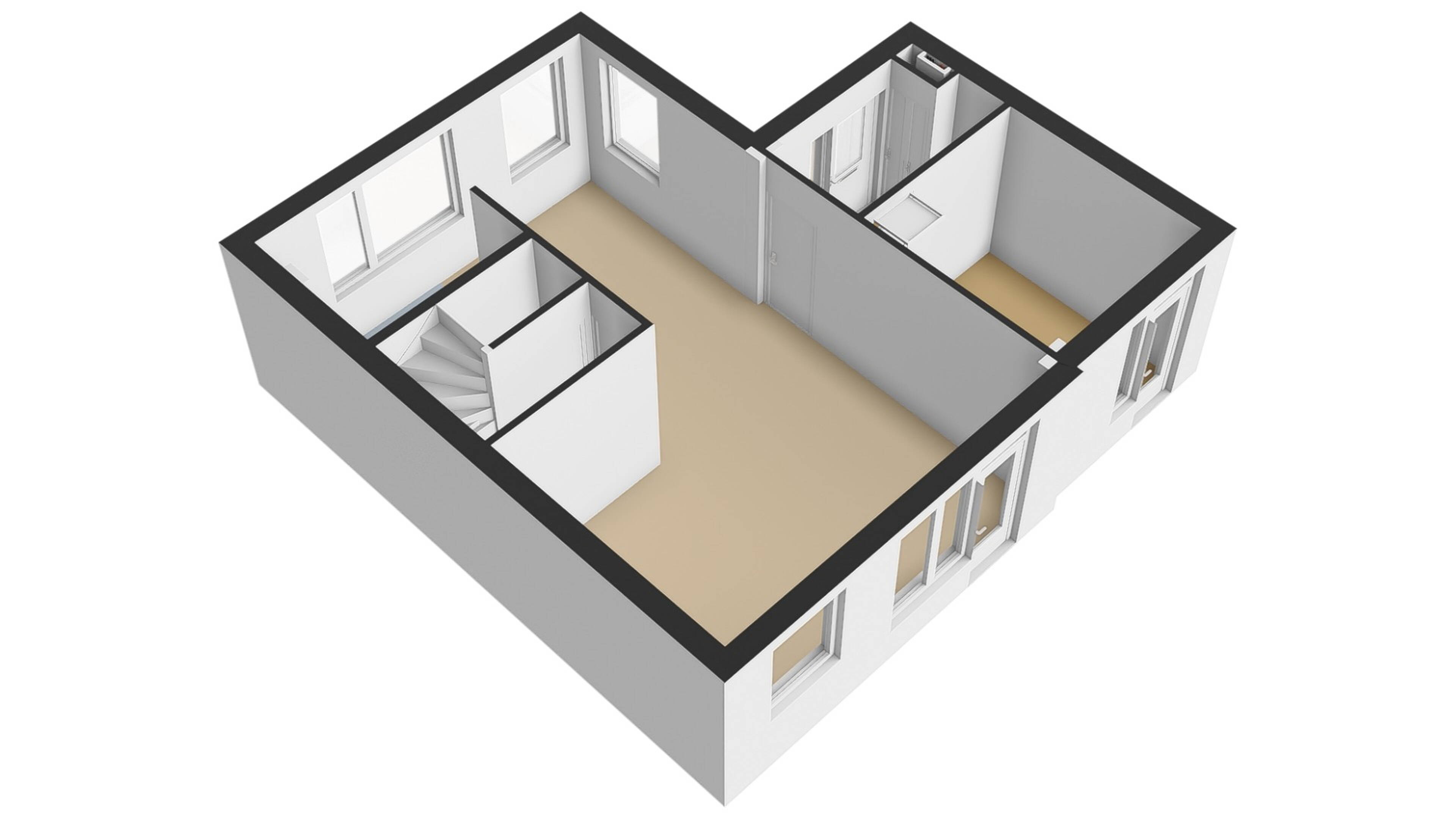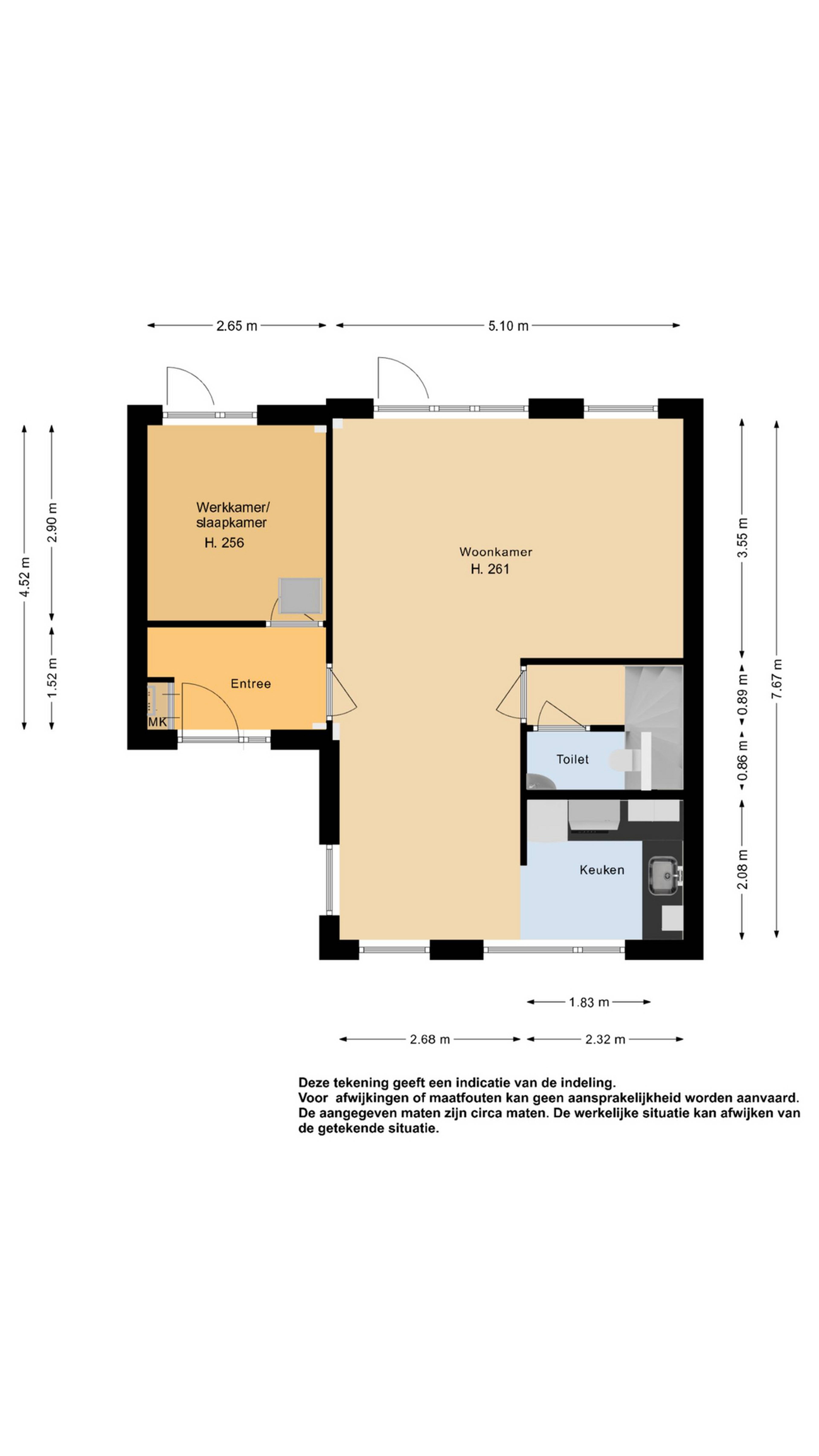 Begane grond: via de zijentree aan de voorzijde van de woning komt u in de hal, waar zich de garderoberuimte, meterkast en de toegang tot de woonkamer en werkkamer bevinden.
