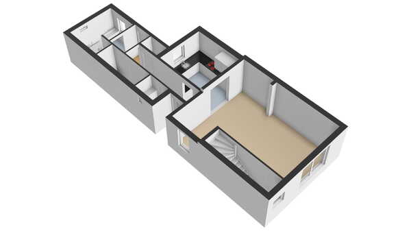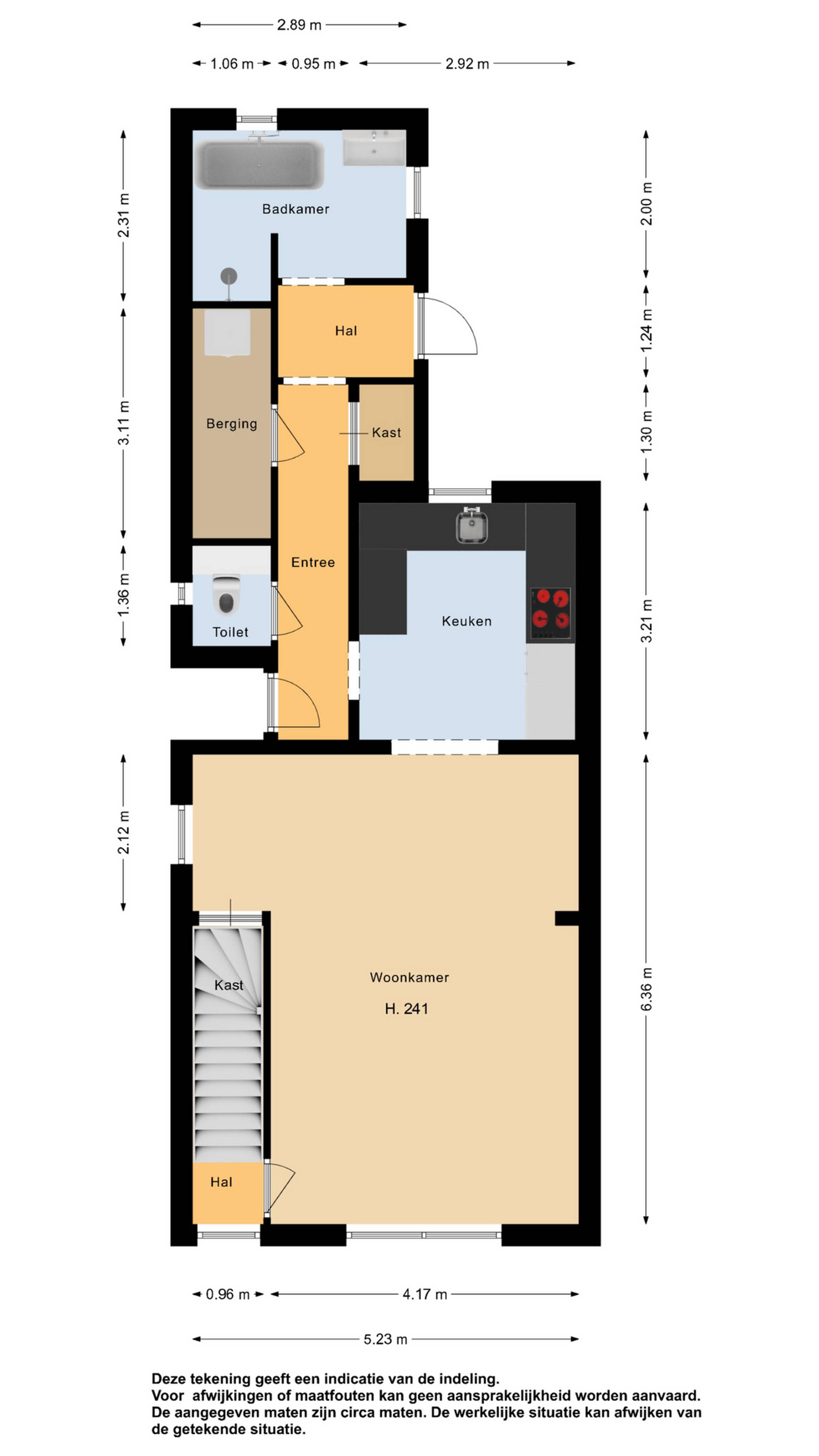 Begane grond: via de entree aan de zijkant van de woning komt u in de hal met meterkast en toegang tot het woongedeelte. Tevens kunt u via deze hal de badkamer, de wasruimte en de separate toiletruimte betreden.