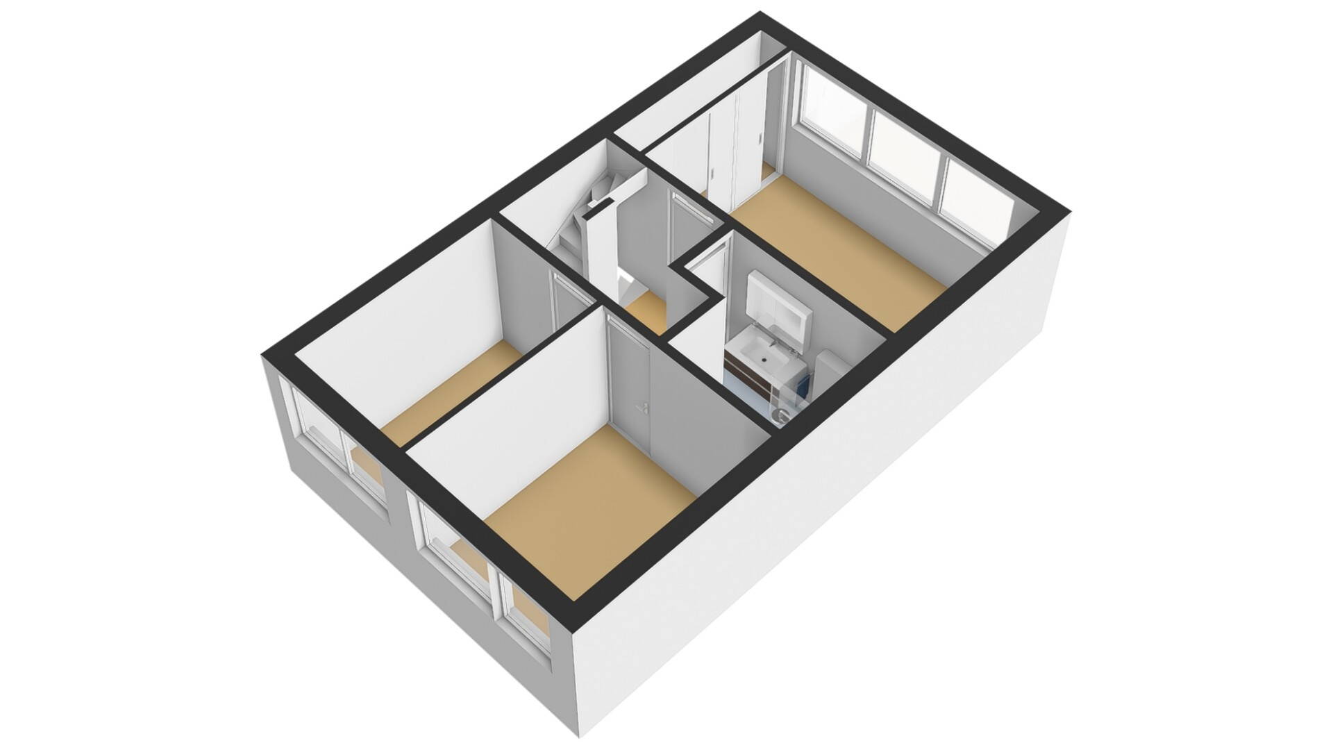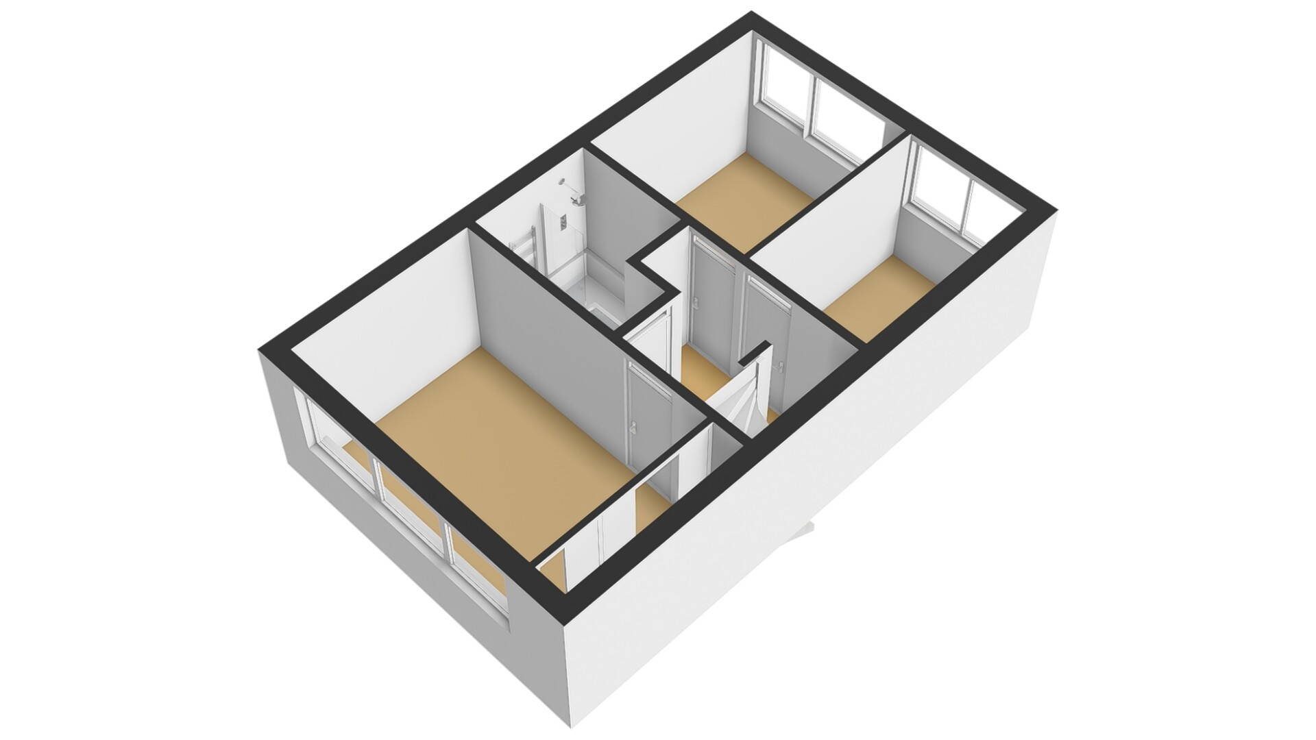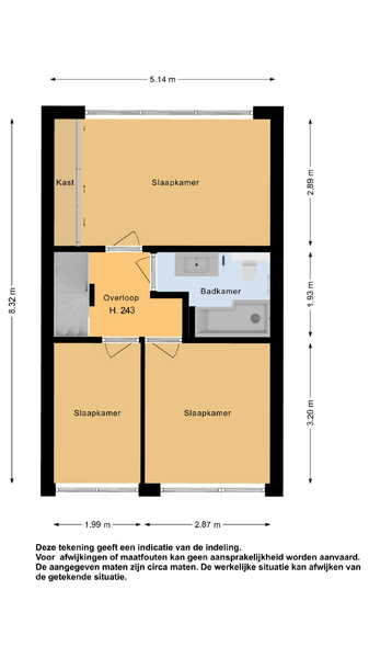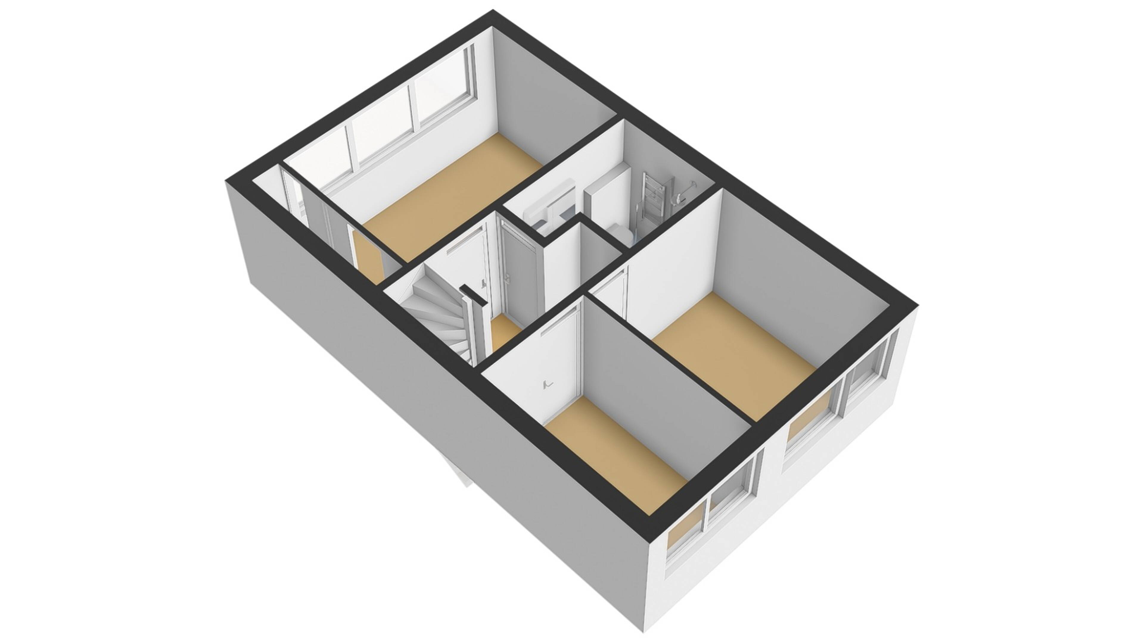 1e verdieping: op de 1e verdieping zijn 3 slaapkamers van verschillende afmetingen gesitueerd. De slaapkamers hebben recht opgetrokken wanden, zodat u de ruimte optimaal kunt benutten. Inclusief de 2e verdieping kunt u in meerdere slaapkamers een 2-persoonsbed kwijt. De masterbedroom is zelfs over de volle breedte van de woning gesitueerd en is ook voorzien van een vaste kastenwand.
