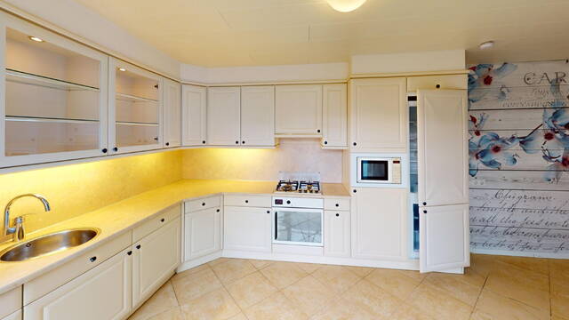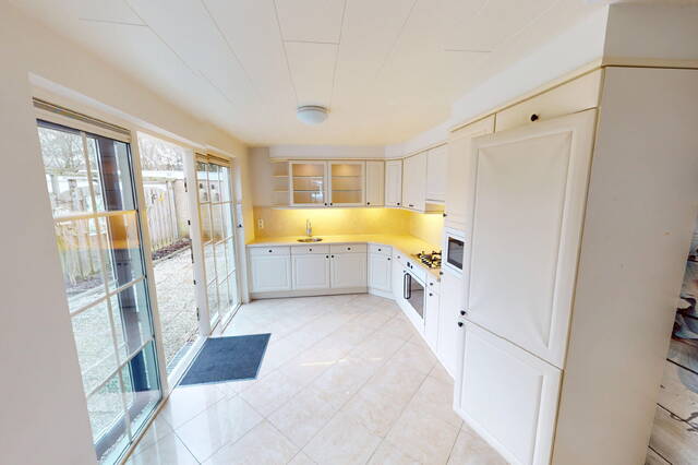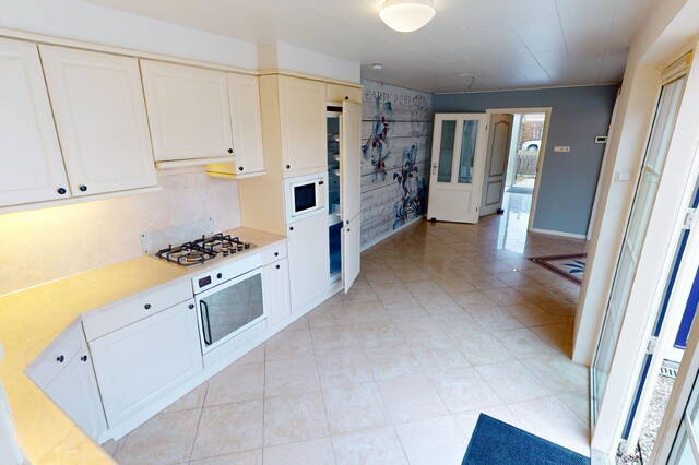 De open keuken is in de aanbouw geplaatst. Hierdoor heeft u extra ruimte in de woonkamer tot uw beschikking. De keuken is in L-vorm geplaatst en heeft een landelijke uitstraling. De keuken is voorzien van een afzuigkap, 4 pits gaskookplaat, elektrische oven, combimagnetron, close-in boiler, koel/vriescombinatie en vaatwasser. U heeft door de raampartijen veel licht in uw keuken. Bovendien heeft u voldoende opbergruimte tot uw beschikking. Het is een heerlijk plek om te kokkerellen! Vanuit de keuken kunt u eveneens de achtertuin bereiken.