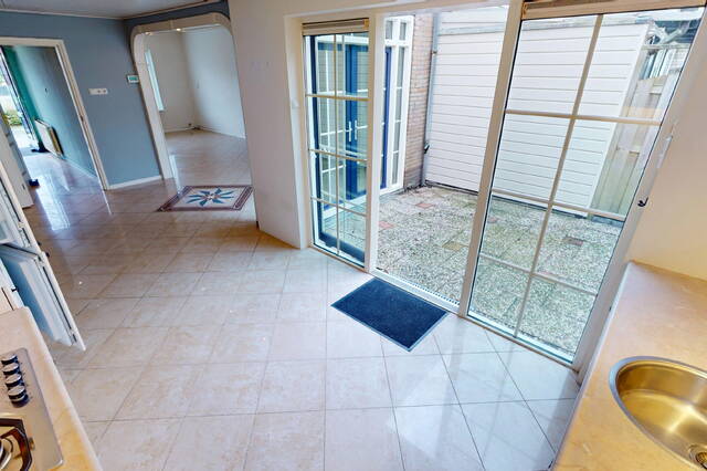 Door de handige vormgeving is het fijn vertoeven in de woonkamer van deze woning. Door de ligging van de woning heeft u ook veel licht in uw woonkamer tot uw beschikking. Vanuit het zitgedeelte aan de voorzijde heeft u een fijne kijk op openbaar groen. De begane grond is voorzien van een plavuizenvloer met vloerverwarming. Aan de achterzijde van de woning bevindt zich het eetgedeelte. U kunt hier met gemak een grote eettafel plaatsen. Via de openslaande tuindeuren kunt u de achtergelegen tuin bereiken.