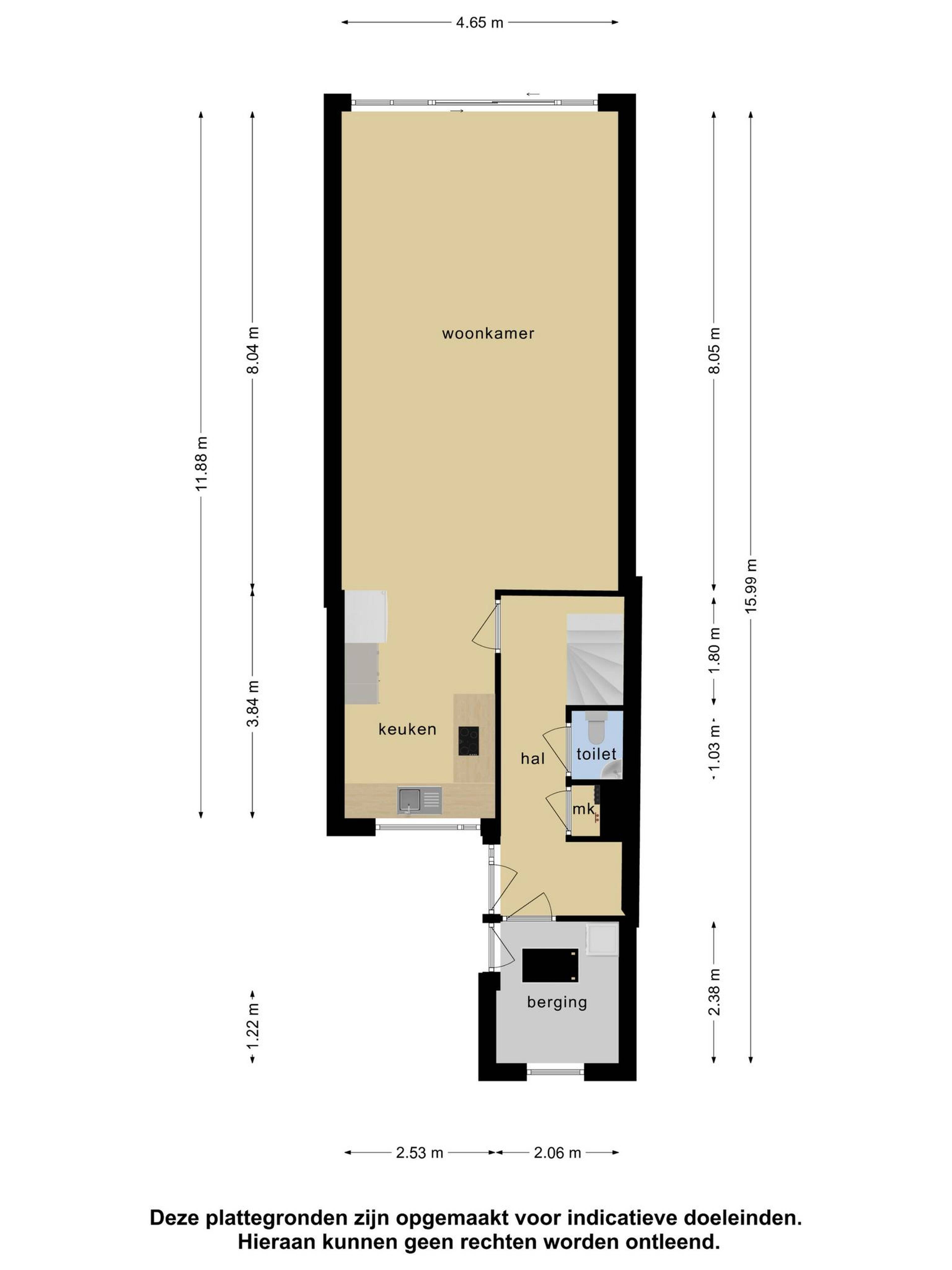 Via de voordeur of via de deur naar de frontberging komt u in de hal met toilet, meterkast, garderobe, trapopgang naar de verdiepingen en entree naar de woonkamer.