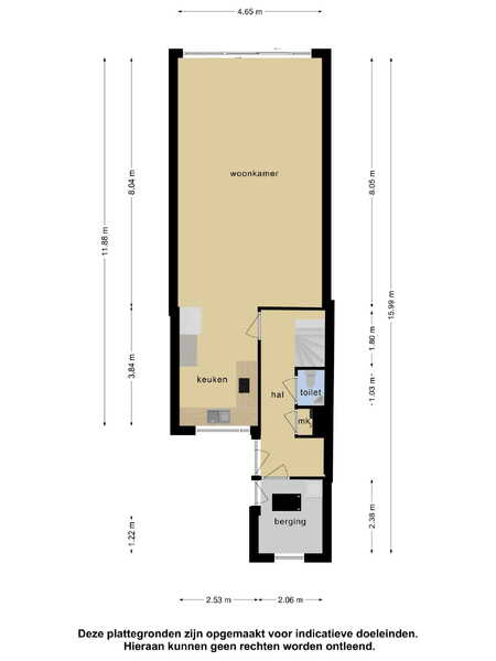 De tuingerichte woonkamer is aan de achterzijde met 3 meter uitgebouwd en voorzien van een schuifpui en grote raampartijen waardoor er veel lichtinval is. De vloer is voorzien van een grenen houten vloer en alle wanden en het plafond zijn gestuukt.